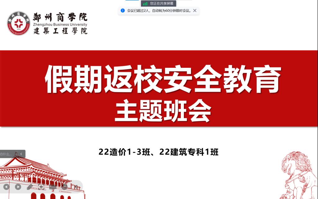 为让同学们尽快调整开学状态、树立文明校风、打造良好开端,建筑工程学院各位辅导员老师于2月21-22日晚召开了开学前线上安全教育及工作部署主题班会,引导全体同学安全返校。
