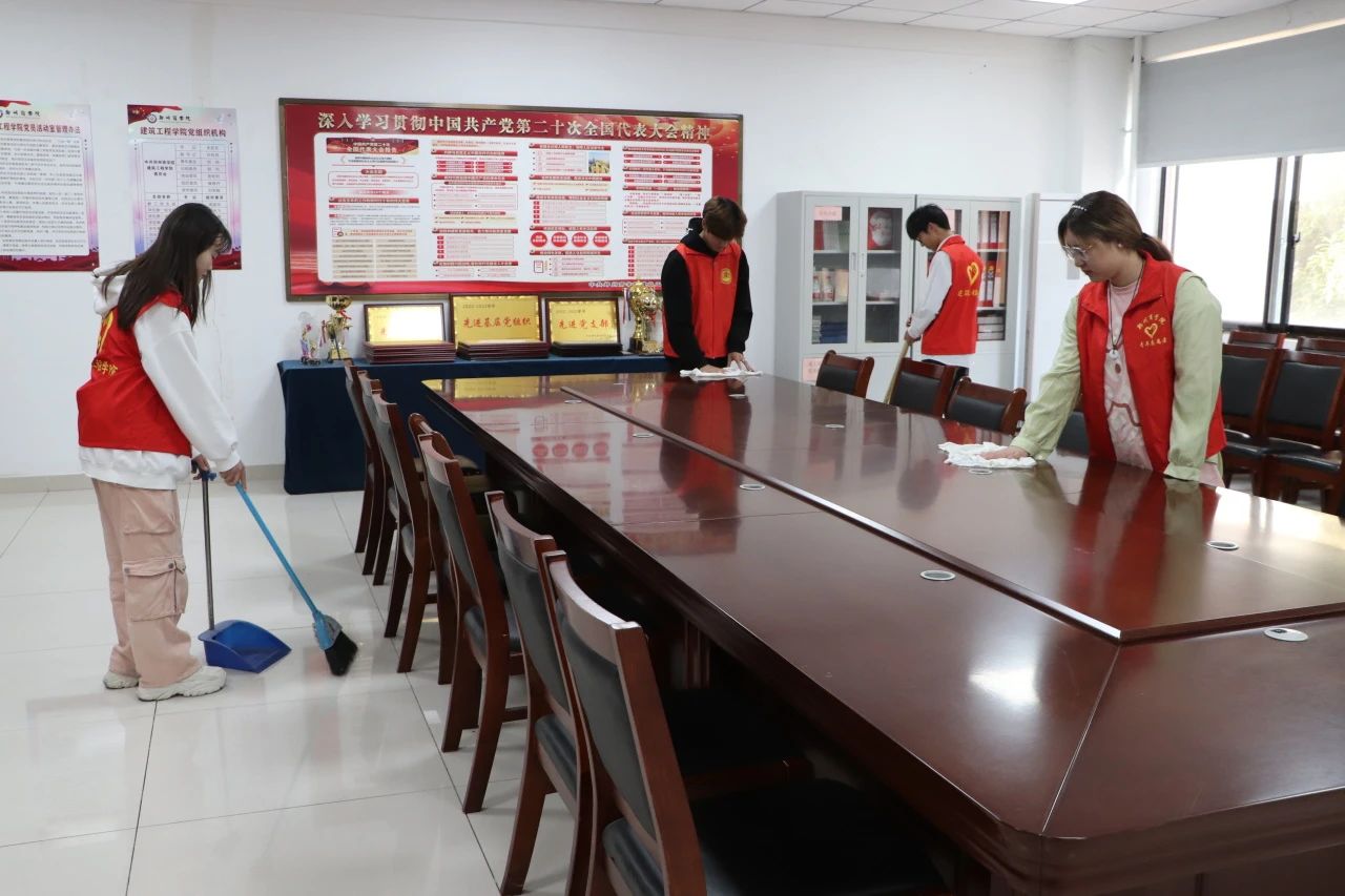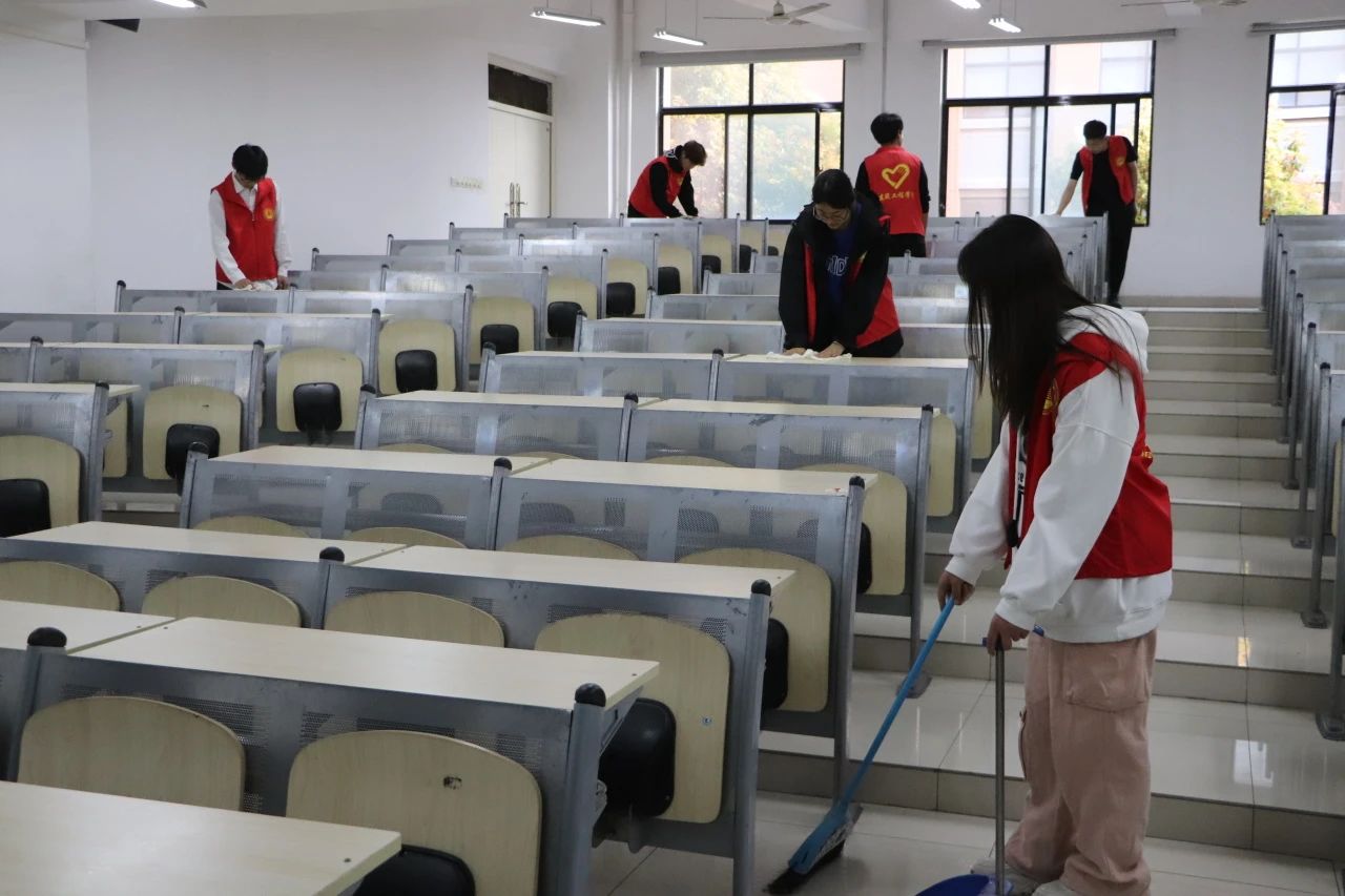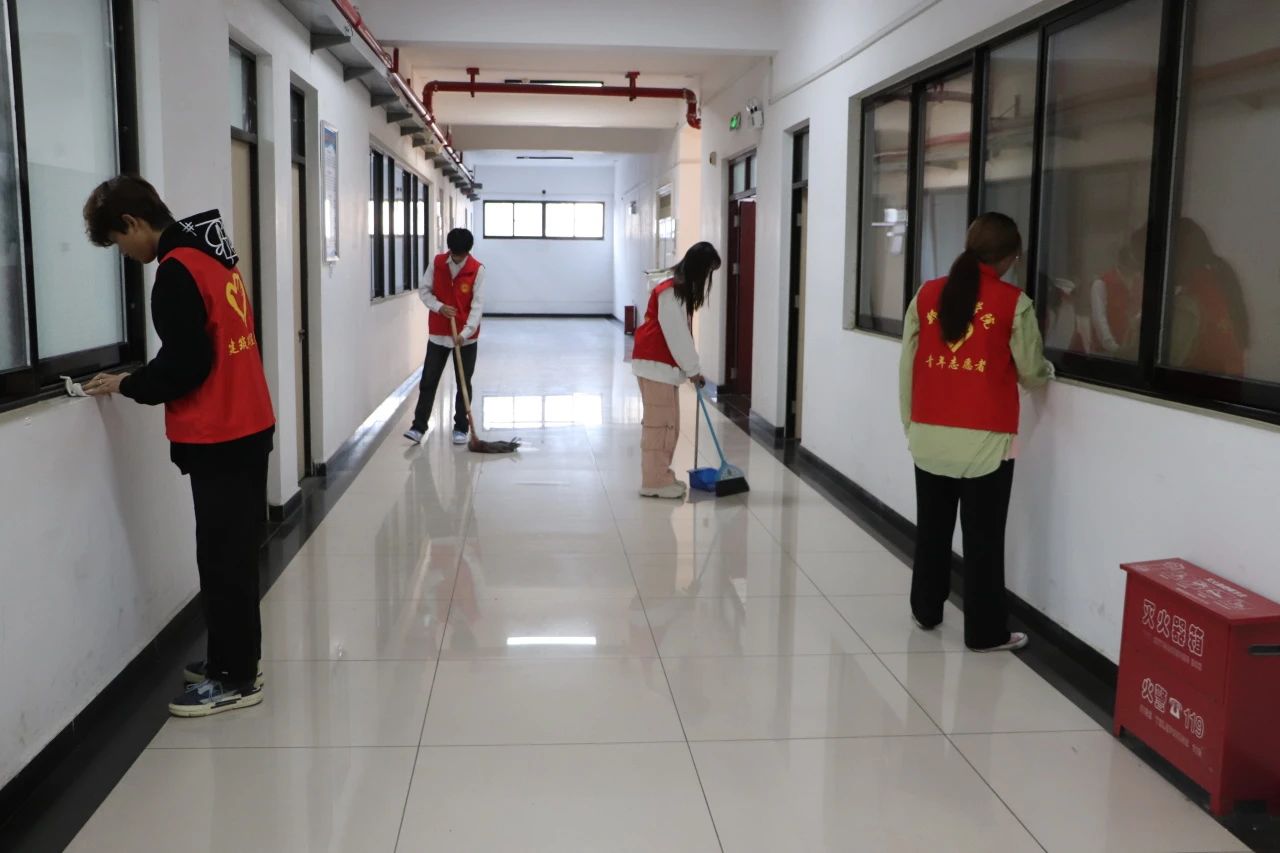 为保证活动高效有序开展,负责人在活动开始前对参与人员进行了分组和安排。在活动活动中,志愿者们对亚泽楼教室、会议室、走廊、楼梯等进行全面打扫,尽力做到了“不留死角、不留盲区”。