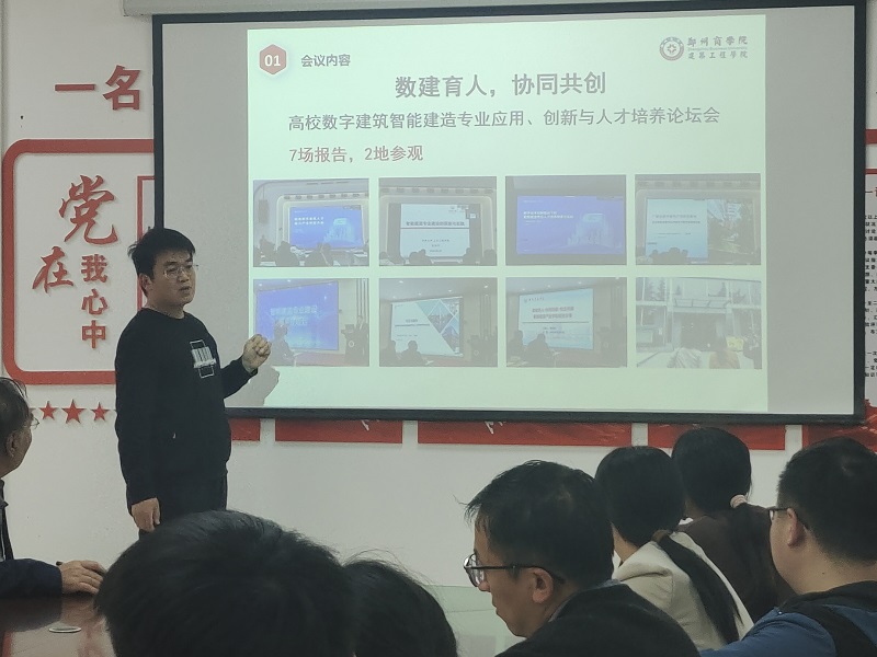 戚宏宇老师针对“数建育人、协同共创——高校数字建筑智能建造专业应用、创新与人才培养论坛”,结合行业发展、设置背景、培养方案、培养成效等方面对智能建造专业的开设进行了分享。通过参加此次专训活动,我院教师对于了解智能建造前沿技术、学科建设、人才培养、工程实践和校企合作等工作具有促进作用,为后续我院智能建造专业的人才培养和专业建设提供了新思路。