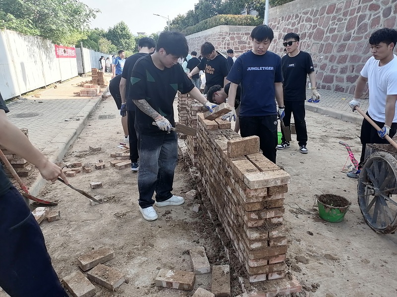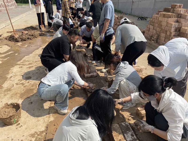 5月8日,各指导老师按照实习计划带领学生在亚泽大楼东侧实习地点正式开展以“理论设计+墙体砌筑”为主题的专业实习。指导教师首先根据专业实习方案对各班进行分组,开展实习动员,分别从墙体设计与结构计算、施工方案设计、工程计量、砌筑施工、资料整理、撰写实习日志报告等方面开展指导。随后,各组学生按照实习场地分配和实习时间表开展砌筑施工工作。