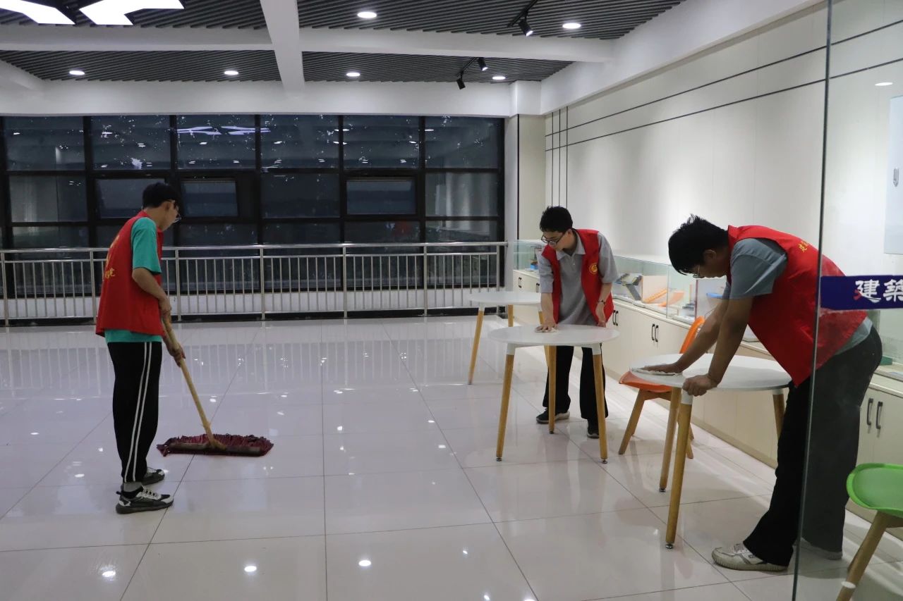 为保证活动高效有序开展,负责人在活动开始前对参与人员进行了分组和安排。在活动活动中,志愿者们对亚泽楼教室、会议室、走廊、楼梯等进行全面打扫,尽力做到了“不留死角、不留盲区”。同时,对公区和消防设施进行了检查,确保安全通道畅通。