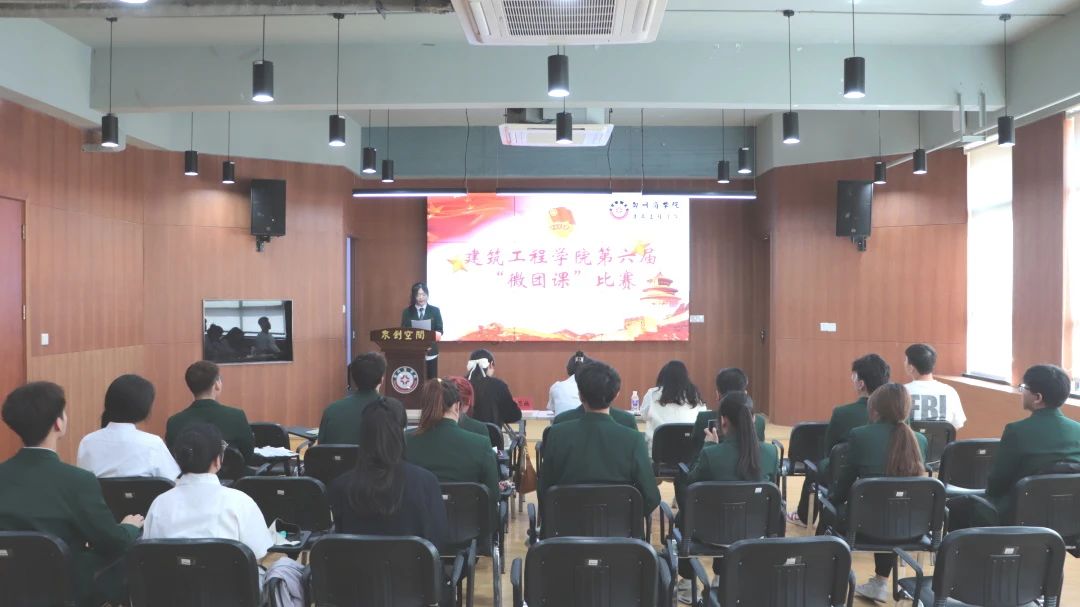 人无精神不立,国无精神不强。为使青年团员更好的学习先辈们历经磨难而不衰,千锤百炼更坚强,敢于战胜艰难险阻的精神和品质,建筑工程学院于5月16日下午在众创空间三楼路演厅开展第六届微团课大赛决赛。出席本次活动的评委老师有许可老师、刘思楠老师、张愉愉老师。评委老师主要从 PPT设计、语言表达、主题立意、精神风貌、创新意识五大板块进行公平公正公开打分。