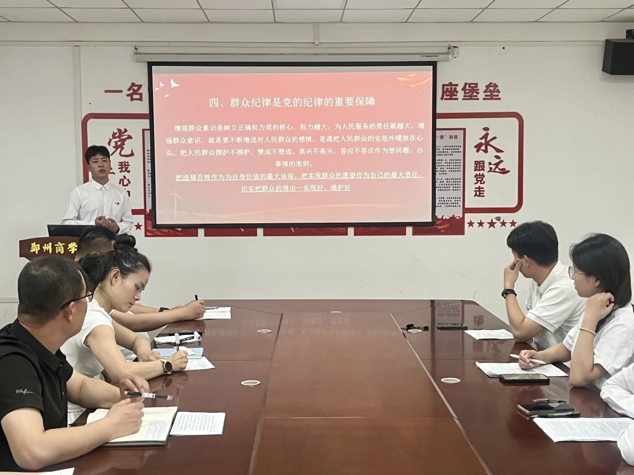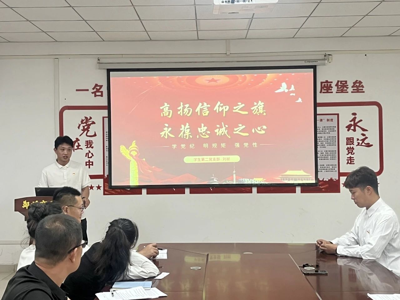 为深入学习贯彻党的二十大精神,推动习近平新时代中国特色社会主义思想深入人心,在全院上下营造学纪、知纪、明纪、守纪的浓厚氛围,5月24日中午,建工学院在亚泽楼会议室举办“学党纪 明规矩 强党性”主题微党课大赛。建工学院党委书记朱宏东、各学生党支部书记出席比赛,大赛由建工学院党委组织委员康雅丹主持。