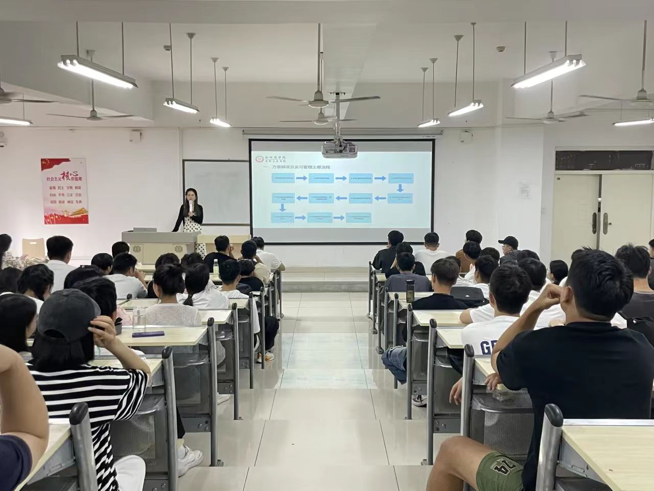 会上,辅导员首先向学生阐明了实习实训的重要性,实习实训是人才培养方案中最后一个实践环节,是一门必修课程,也是学生对所学知识和技能进行实践应用和检验总结的一个过程,每个学生都必须按照相关要求认真完成。同时辅导员老师介绍了实习实训流程,实习中应遵守的纪律和注意事项,并对实习实训安全教育做重点强调。希望同学们能够充分利用好这次实习机会,在实践中学习成长,并严格按照实习要求,高标准、高质量的完成实习任务,为正式踏入社会奠定坚实的基础,顺利完成从学生到社会职业人的角色转换,提前适应未来的工作岗位。