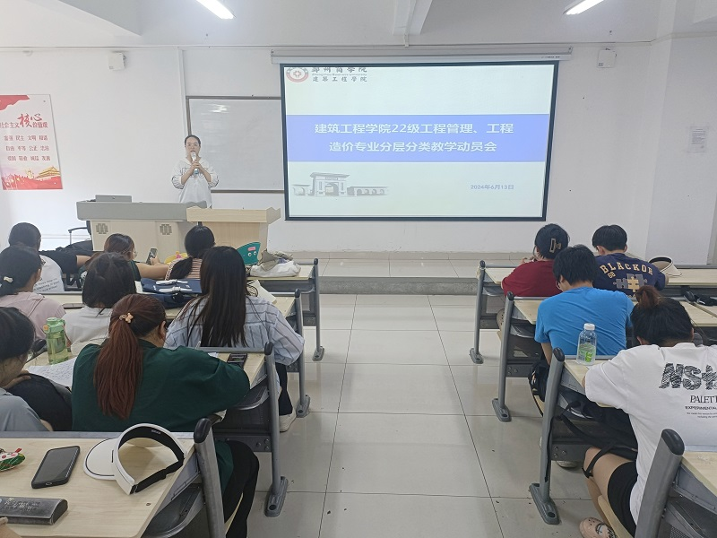 为深入推进我院分层分类教学改革,重视学生的个性化发展需求,6月13日建工学院在亚泽大楼204教室举办“2022级工程管理、工程造价专业分层分类教学动员会”,工程管理教研室主任王丹老师主讲,2022级工程管理、工程造价专业全体学生参加了此次会议。