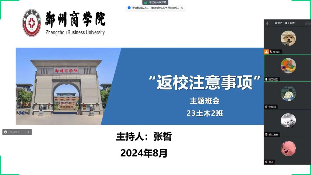 班会伊始,辅导员老师们以饱满的热情和亲切的话语向学生们致以新学期的问候和祝福。辅导员们通过PPT展示、观看小视频等形式,围绕新学期新计划、作息规律调整、校园管理、安全教育、防诈骗等方面提出要求,要求学生按时返校,帮助学生做好新学期的引导和规范。
