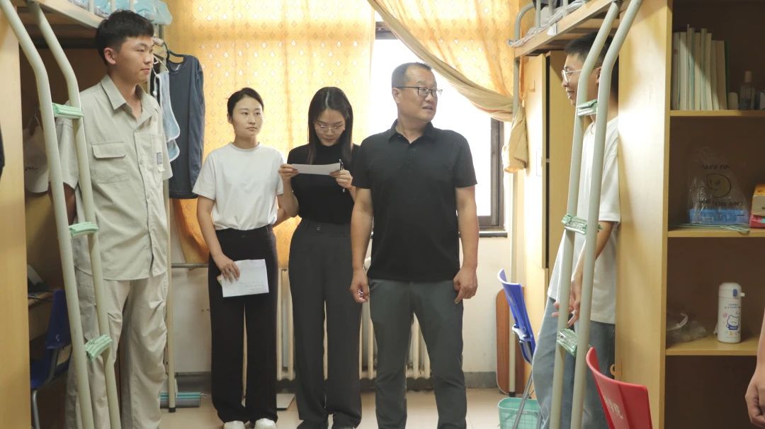 同时,我院领导及辅导员老师查看了本专科新生宿舍情况,张贴床号,围绕卫生与安全两方面进行检查,对宿舍的卫生状况、安全设施、床铺配置以及空调、水电等硬件设施进行了深入细致的检查,针对宿舍存在的不足之处,现场提出整改意见,对发现的问题及时解决,做到以查促改,防范未然,为接下来新生的到来做好准备。