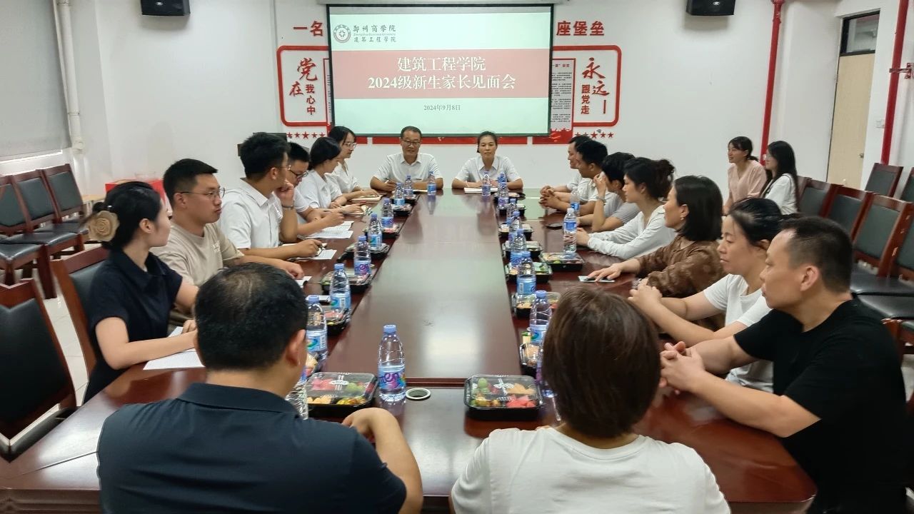 为建立家校共育平台,加强家校沟通交流,9月8日下午,建工学院在亚泽大楼会议室召开“建工学院2024级新生家长见面会”,张燕燕院长、朱宏东书记、叶灵云副院长、辅导员贾镔、2024级新生辅导员和新生家长代表参加会议。