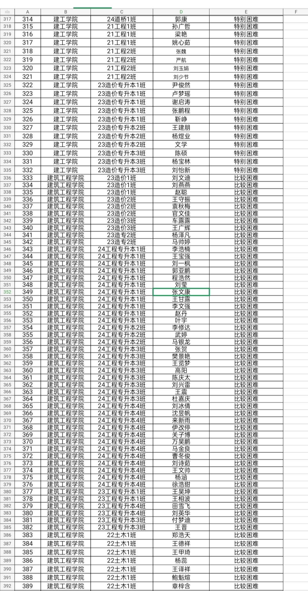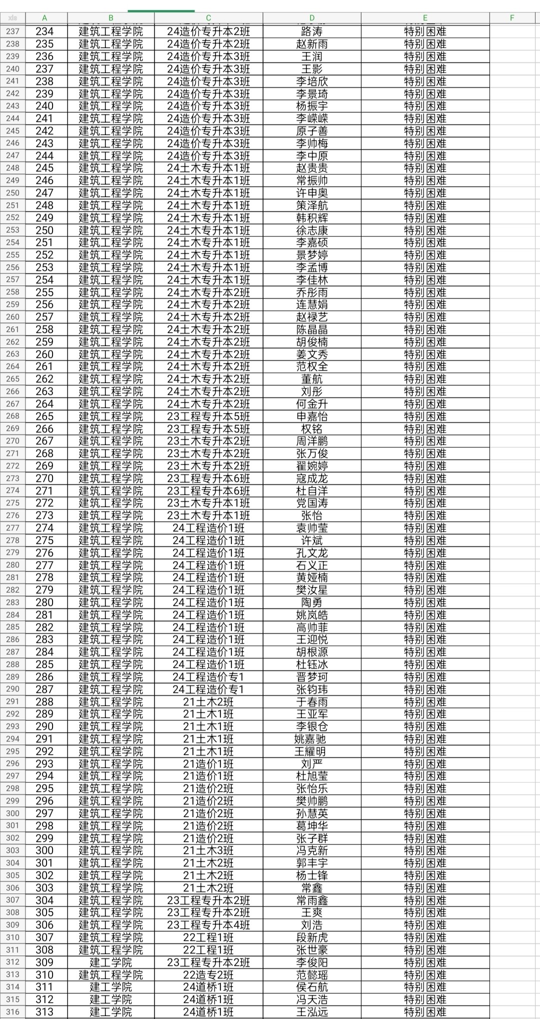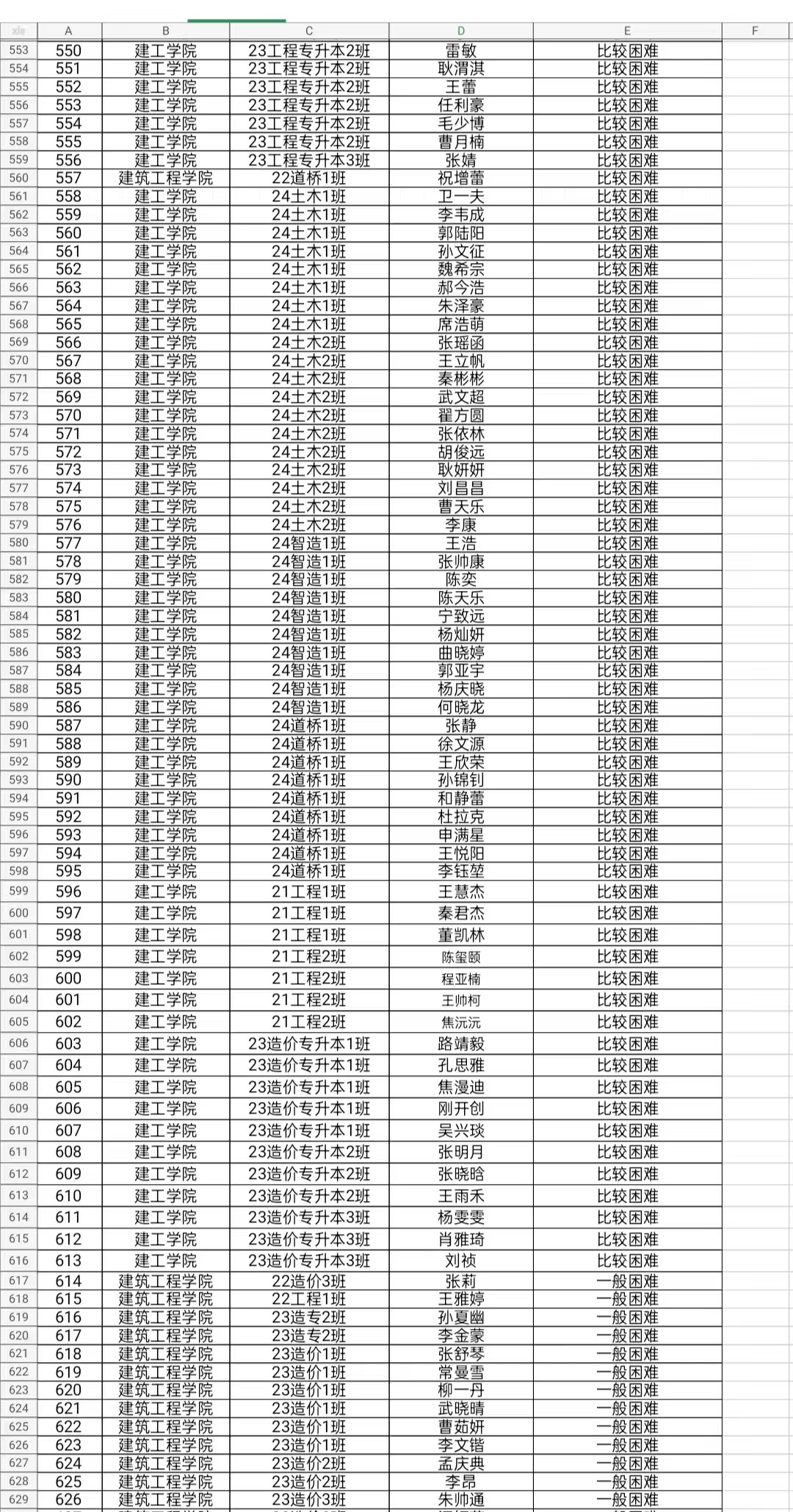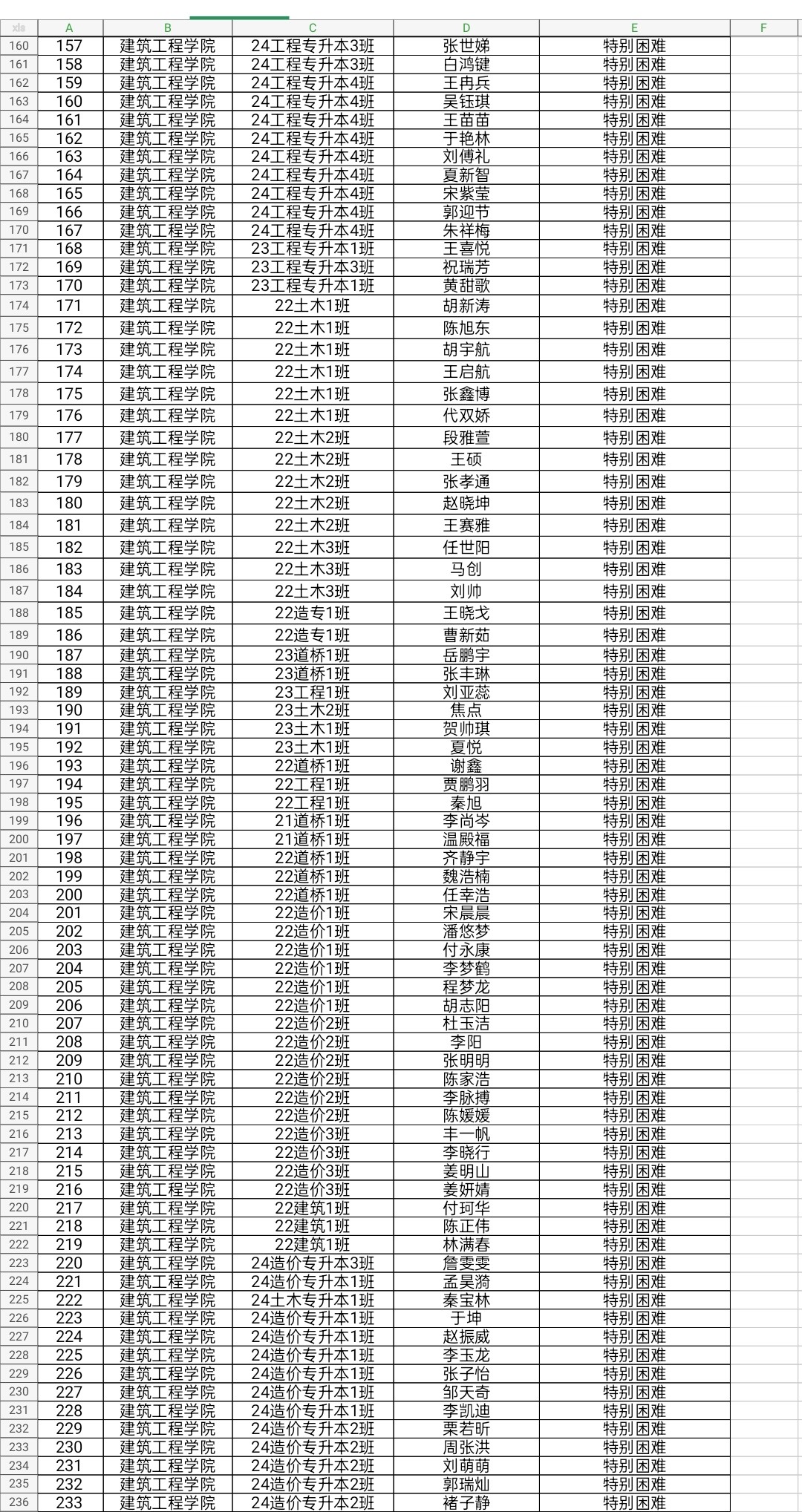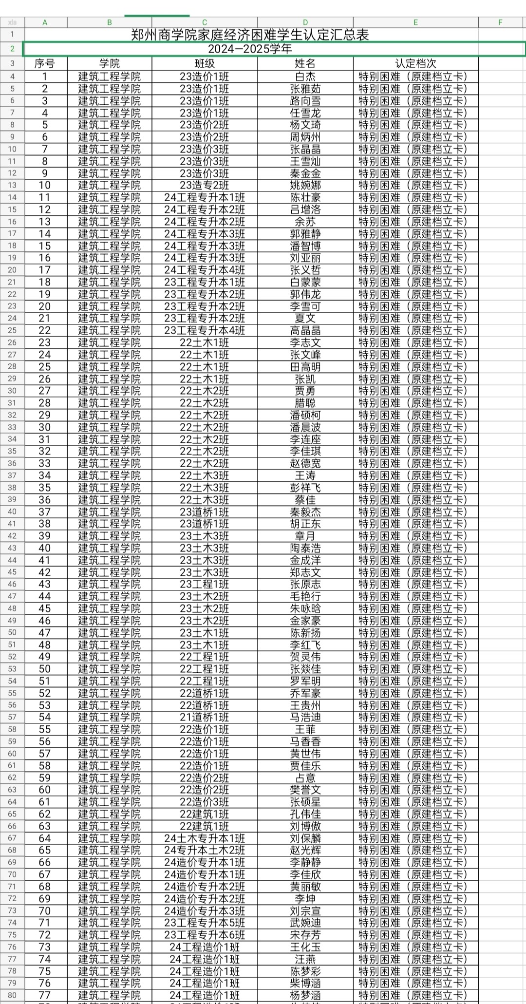 建筑工程学院关于家庭经济困难学生认定工作评议小组名单的公示