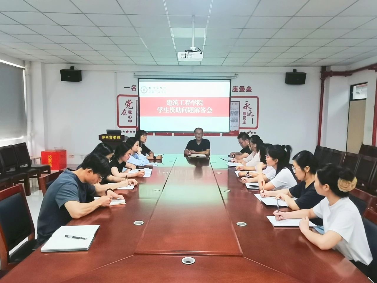 为了深入贯彻国家高校家庭经济困难学生资助政策,解决学生的实际困难和需求,进一步提升资助育人工作体系,推进资助工作有序开展。我院于9月9日在亚泽113召开了学生资助问题解答会,出席会议的成员有党委书记朱宏东,全体辅导员以及学生代表。