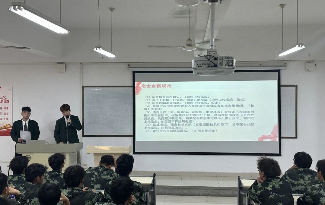 首先,由学院宿管部负责人亓智贤同学分别从宿舍管理、宿舍查寝标准、宿舍内务、宿舍安全、人际交往安全、突发事件处理六个方面详细讲解,对新生宿舍长在宿舍管理层面进行了系统培训。其次,由新生宿舍长赵恒晨同学发言,就新生宿舍管理心得进行了分享,同时他号召全体宿舍长要负起责任,发挥信息员、管理员、领航员作用,为学院宿舍管理做出奉献。最后,宿舍管理专员张秋玉老师总结发言,向宿舍长分享了自己的宿舍管理经验。同时对宿舍长提出五点要求,一要树立榜样,引领风尚 ;二要增进团结,促进交流;三要关注安全,防范未然;四要传递正能量,弘扬正气;五要积极反馈,共建共享良好的宿舍环境。