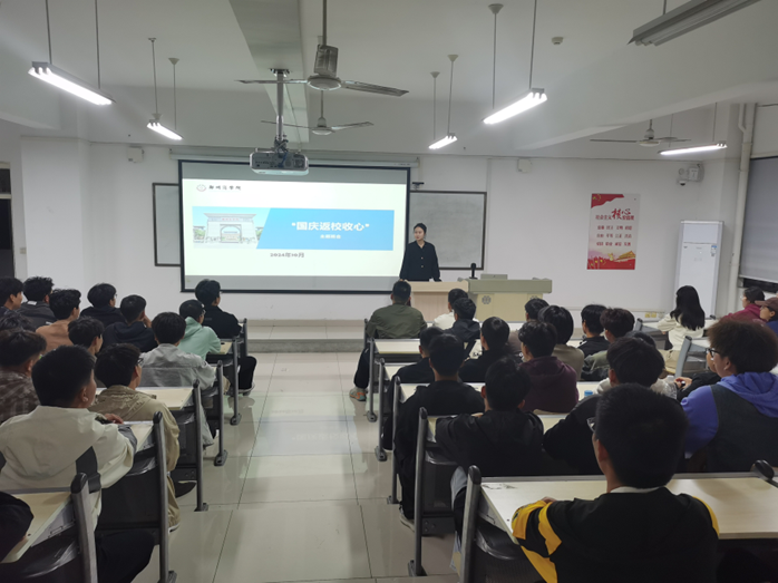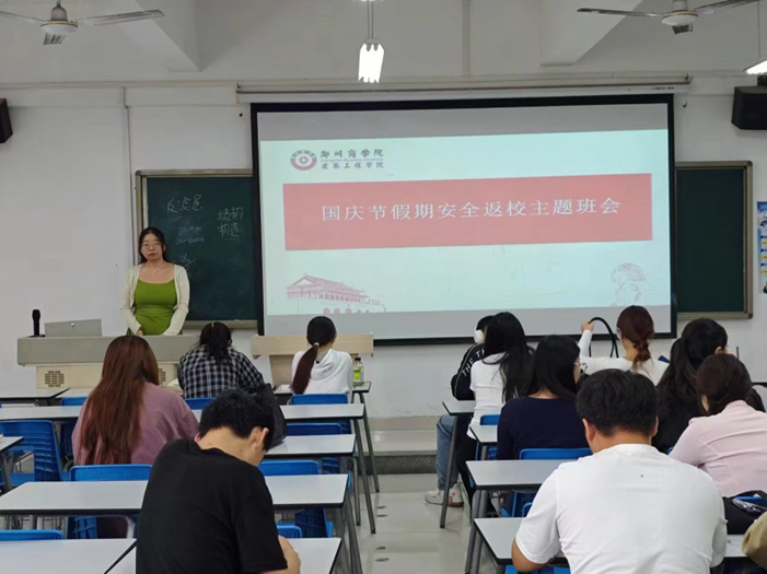 为了调整学生节后状态,尽快跟上学习节奏,引导学生收心归位鼓干劲、凝心聚力再出发,10月7日 ,建筑工程学院在亚泽楼组织开展国庆节后收心班会,本次班会由各班级辅导员主持。此次班会旨在引导学生们从国庆假期的轻松氛围中抽离出来,以饱满的热情和昂扬的斗志投入到新学期的学习中去。