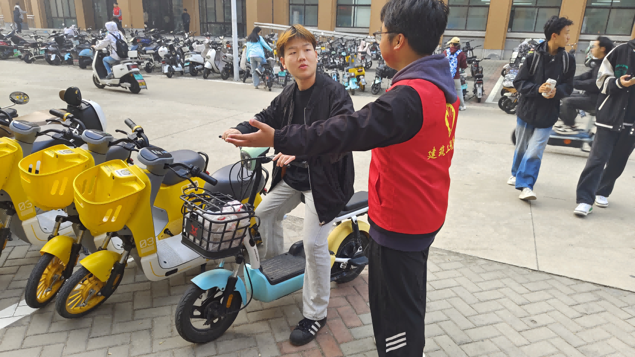 亚泽楼前,辅导员老师们和志愿者们严格管理学生携带食物进入教学区域的情况,同时加强对非机动车辆停放秩序的监督,有效改善了学院交通布局,营造出更为整洁、有序的校园风貌。