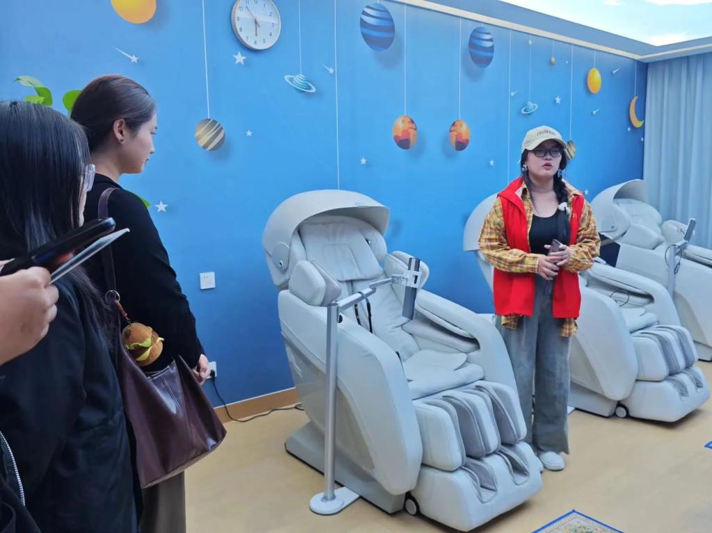 在志愿者的带领下,新生们逐一参观了接待室、宣泄室、沙盘室、放松室、团体辅导室等多间专业化的心理功能室。咨询室里,宁静的氛围让人能够敞开心扉,倾诉内心的困惑与烦恼;团体活动室中,丰富的道具和宽敞的空间,似乎在召唤着大家一起参与各种有趣的心理活动。接着,志愿者为新生们介绍了心理教育中心的服务内容和重要意义。在这里,不仅可以获得一对一的心理咨询,还能参加心理健康讲座,学习应对压力、调节情绪的方法。