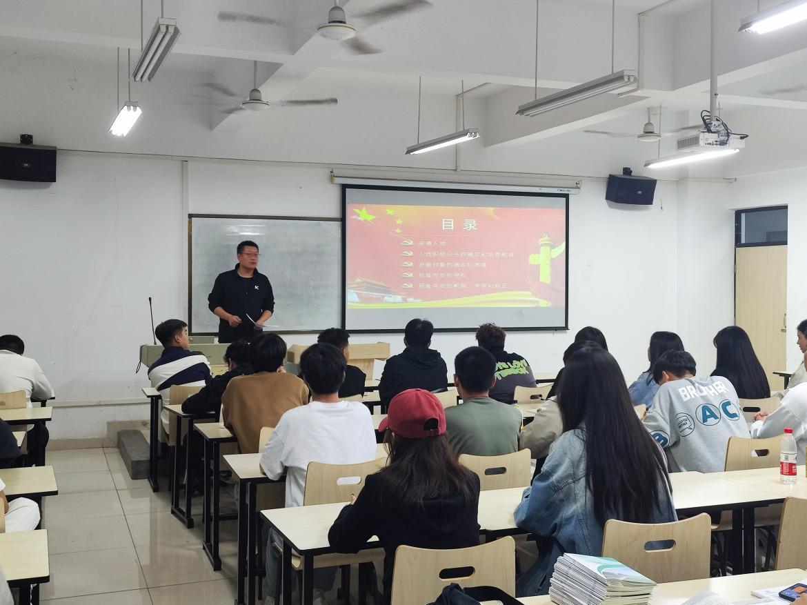 随后,我院党委组织委员贾镔全面地为大家讲解了中国共产党发展党员的工作流程,包括从申请人递交入党申请书开始,经过党支部初审、谈话、确定为积极分子、培养教育和考察等一系列环节,最终通过严格的审核和批准程序,成为一名正式的中国共产党党员的全过程。通过讲解,大家不仅对入党的具体流程有了更加清晰明确的认识,同时也深刻理解了自己在入党进程中应努力的方向。