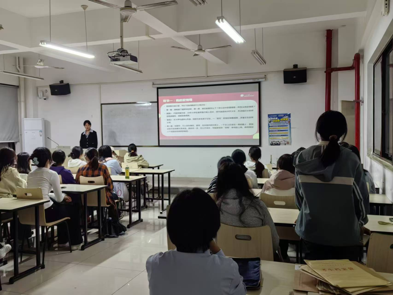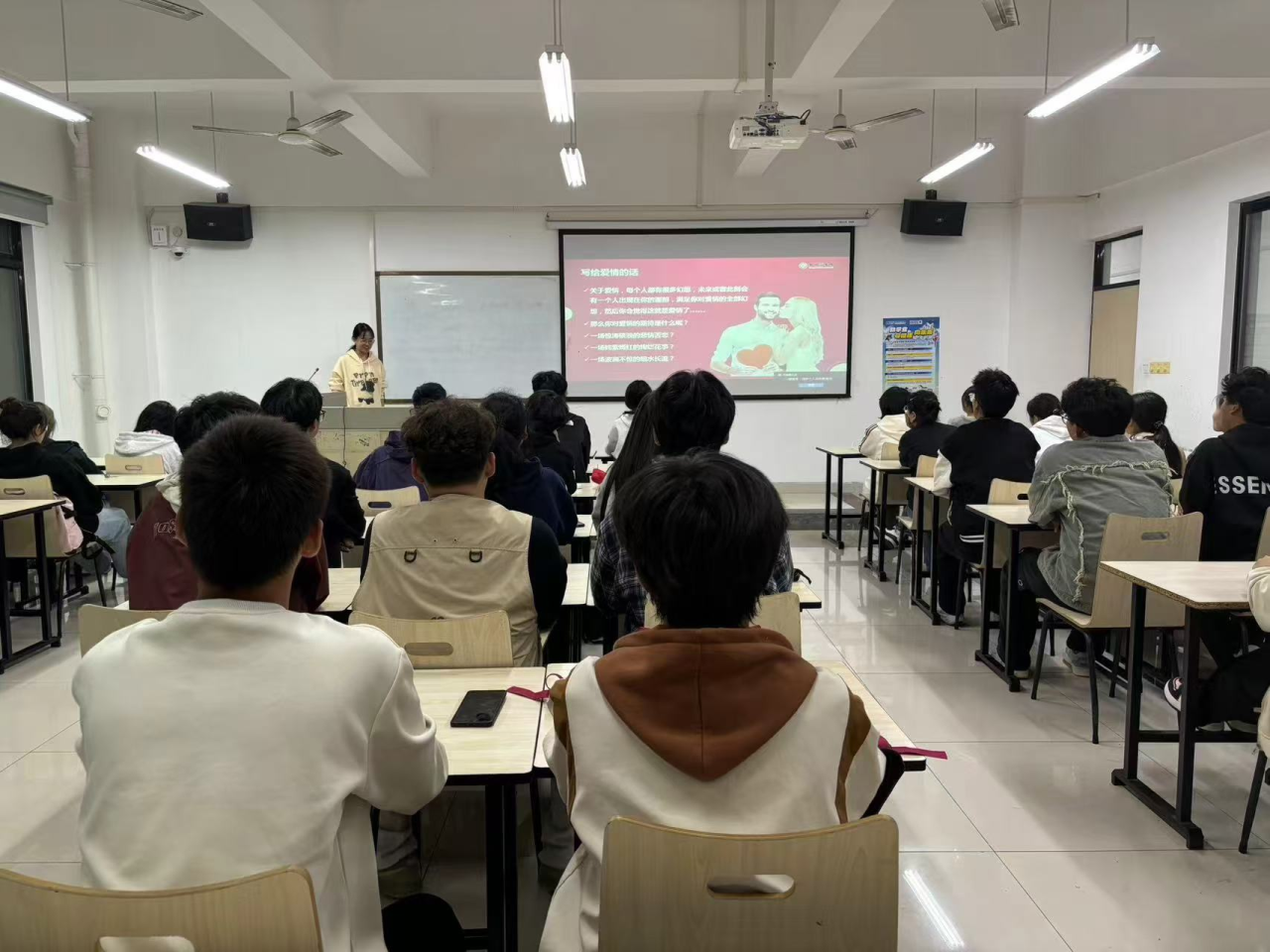 为了引导大学生正确看待和处理恋爱关系,促进其心理健康和个人成长,帮助大学生们更好地理解和处理自己在恋爱关系中遇到的问题,提升自我意识和情感管理能力。建筑工程学院特此开展了以“与大学生谈‘情’说‘爱’”主题的心理班会。