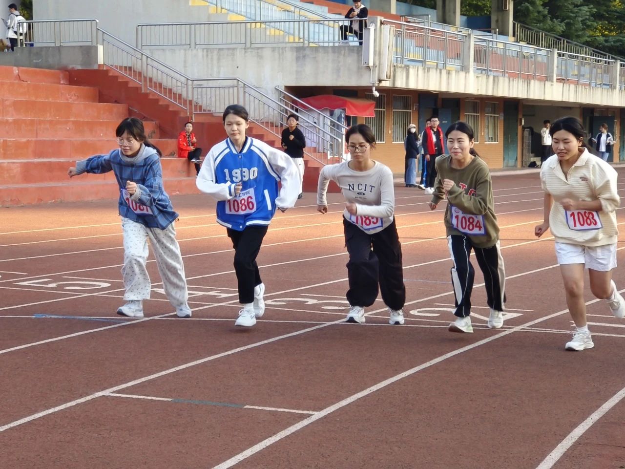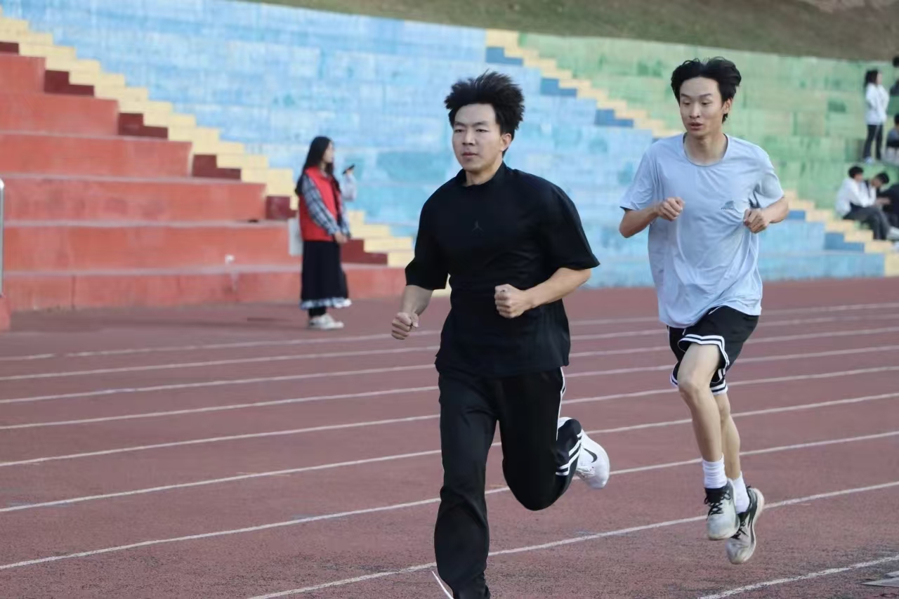 运动健儿踏上赛道,如离弦之箭,爆发瞬间速度。蹬地有力,摆臂坚决,用速度诠释青春激情,向终点冲刺,这一刹,是对自我的超越。