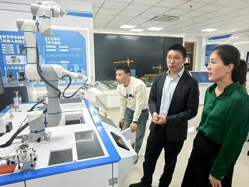 嘉兴南湖学院建筑工程学院副院长和实验中心主任带领参观了实验中心,重点观摩了智能建造实验教学中心,随后与学院领导和专业负责人就实验中心建设、课程建设和学生发展进行了分享与交流。