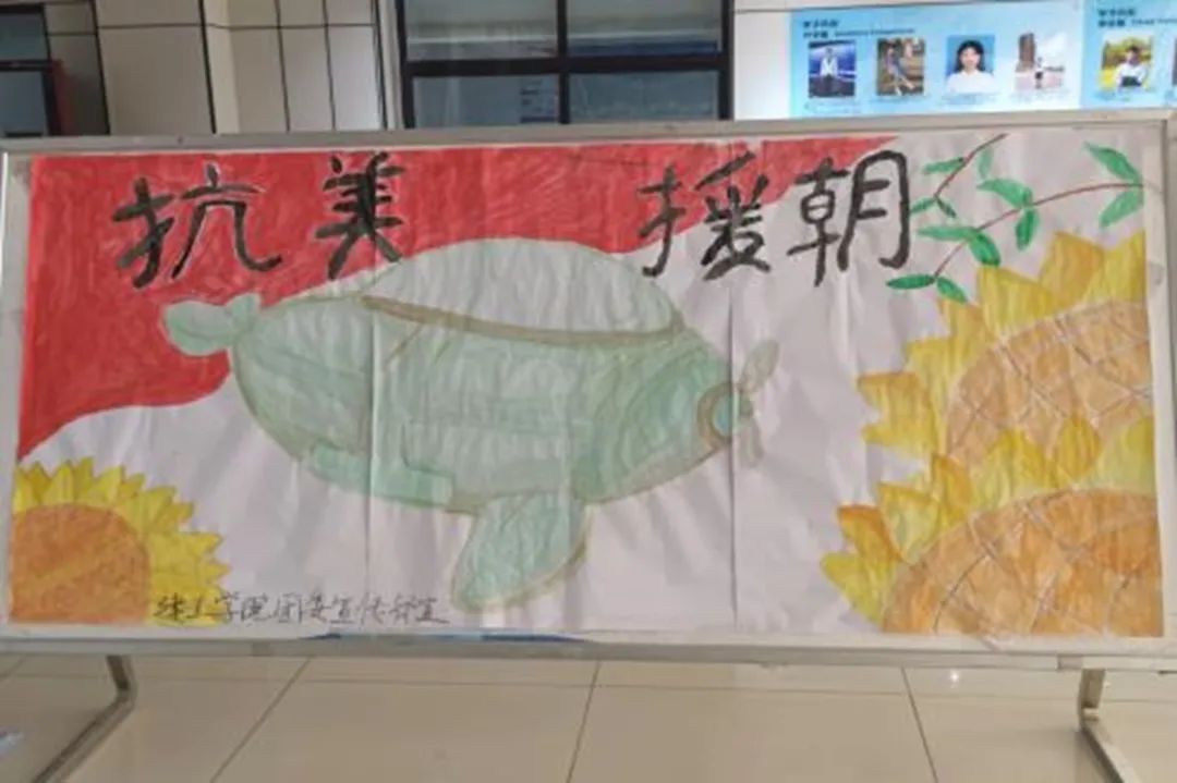 画展上,通过文字简介与图片绘制,宣扬了抗美援朝精神,同学们了解到抗美援朝战争的时间、背景以及参战的重大意义,切身体会到现在幸福生活的来之不易。一幅幅精美的板报,是学生们对英雄的缅怀,对祖国的热爱。在战场上,志愿军将士们英勇顽强,不畏强敌,以弱胜强,创造了无数战争史上的奇迹。他们用实际行动诠释了“一不怕苦、二不怕死”的战斗精神,展现了中国人民的坚韧不拔和英勇无畏。这些英勇的事迹,将永远铭刻在历史的长河中,成为激励后人不断前行的力量源泉。