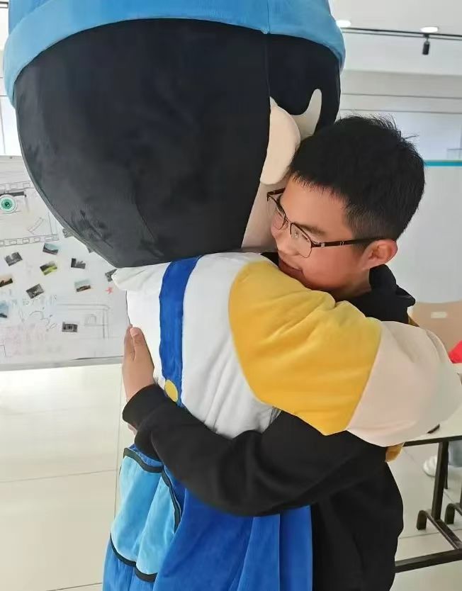 本次活动在开阔场地设置拥抱区,准备可爱的玩偶服,并安排志愿者穿上玩偶服。活动现场,许多学生被有趣的活动内容所吸引,积极参与进来,参与者主动与穿着玩偶服的志愿者握手、拥抱,并说着祝福和关爱的话语,积极配合工作人员签到。在这场活动中,同学们放下羞涩与拘谨,勇敢的张开双臂;志愿者们以饱满的热情积极参与,全神贯注;工作人员们认真负责,耐心配合,精心维护现场秩序,全程监督活动的开展,确保一切顺利进行。