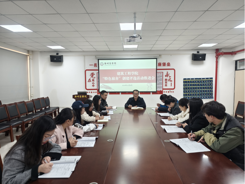 为进一步落实学校关于学生宿舍管理的相关要求,推进学生宿舍“六化一家园”创建,11月5日,建工学院于亚泽楼113会议室召开2024-2025学年第一学期“特色宿舍”创建评选活动部署会,我院党委书记朱宏东、团委书记刘帅和全体辅导员参会。