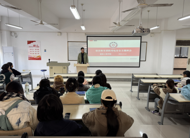 随着秋冬季节的到来,天气逐渐干燥,为增强同学们的宿舍消防安全意识,加强宿舍安全用电的管理,切实维护宿舍安全稳定。建工学院于11月6日开展宿舍秋冬消防用电安全主题班会。
