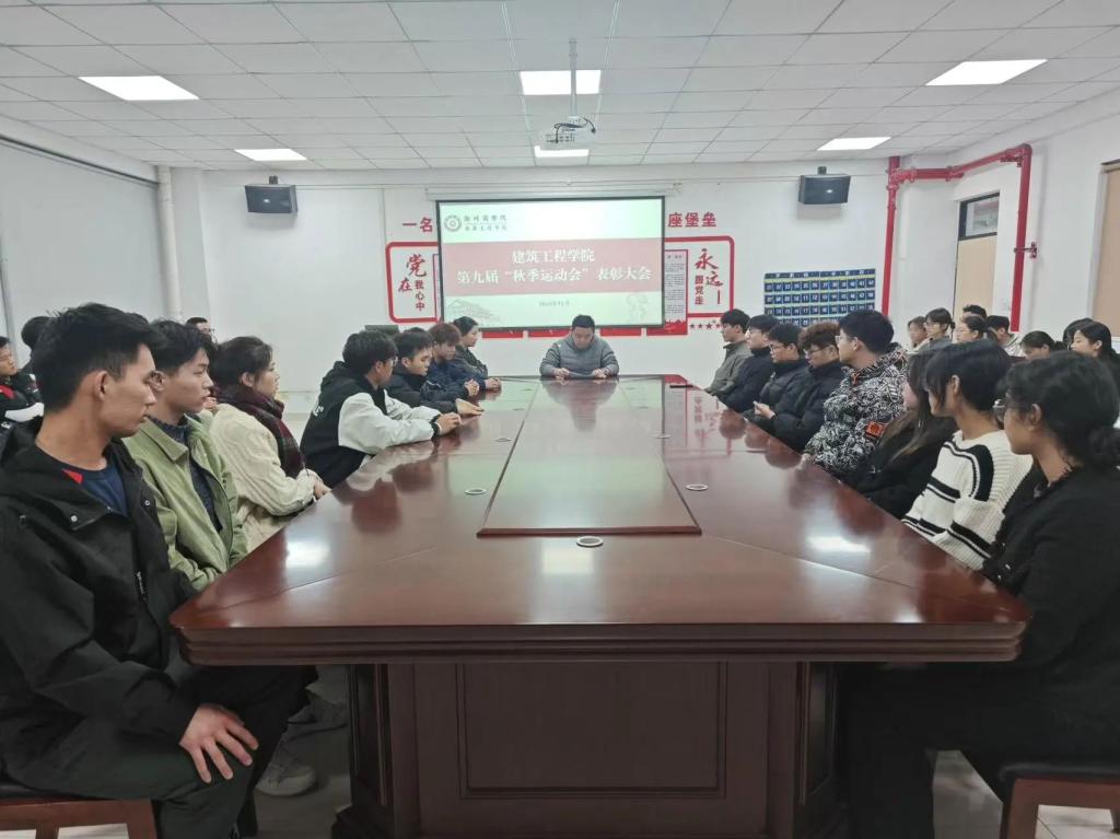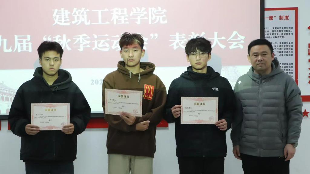 为表彰在第九届秋季运动会中表现突出的个人与团队,弘扬体育精神,激发校园活力,11月13日,建筑工程学院在亚泽楼113举办第九届秋季运动会表彰大会,本次会议由我院团委书记兼行政秘书刘帅主持。