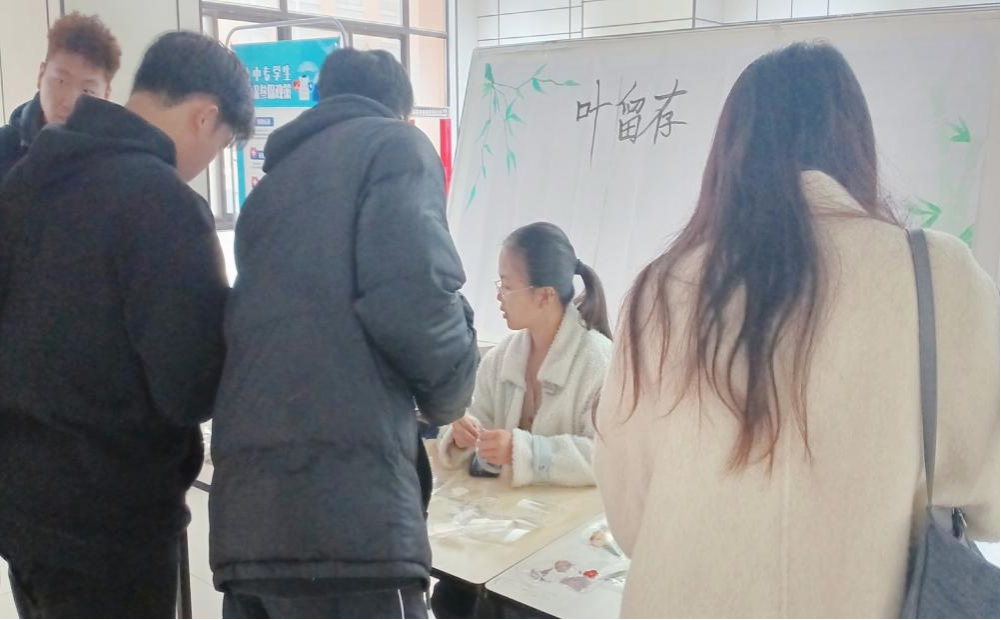 活动现场,同学们发挥奇思妙想,将一片片树叶点缀后存放于书封,让更多人感受到季节与书香交织的美好。展板上的书签,宛如开启书籍世界美好寓意的钥匙,是对时光的温柔定格。