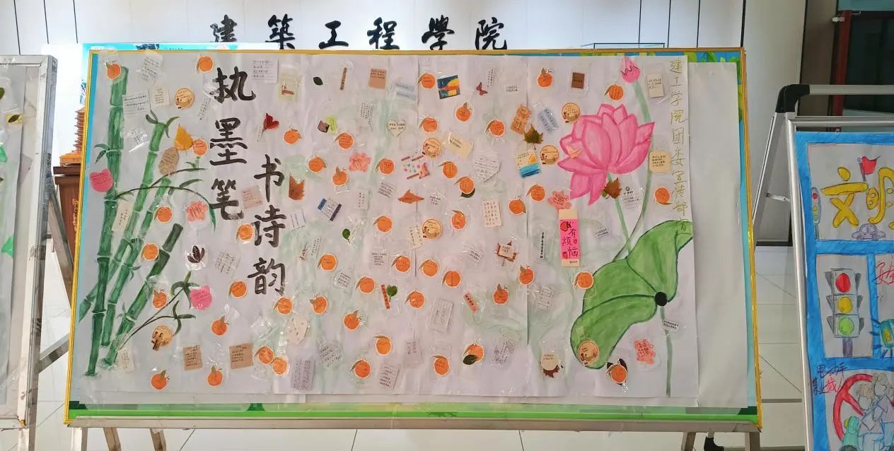 为助力我院学子养成良好的阅读习惯,使其与书香相伴,提升综合素养,培养人文精神并弘扬传统文化。建筑工程学院于11月14日在亚泽楼一楼大厅举办“方寸蕴书香”书签制作系列活动之“执笔墨,书诗韵”。