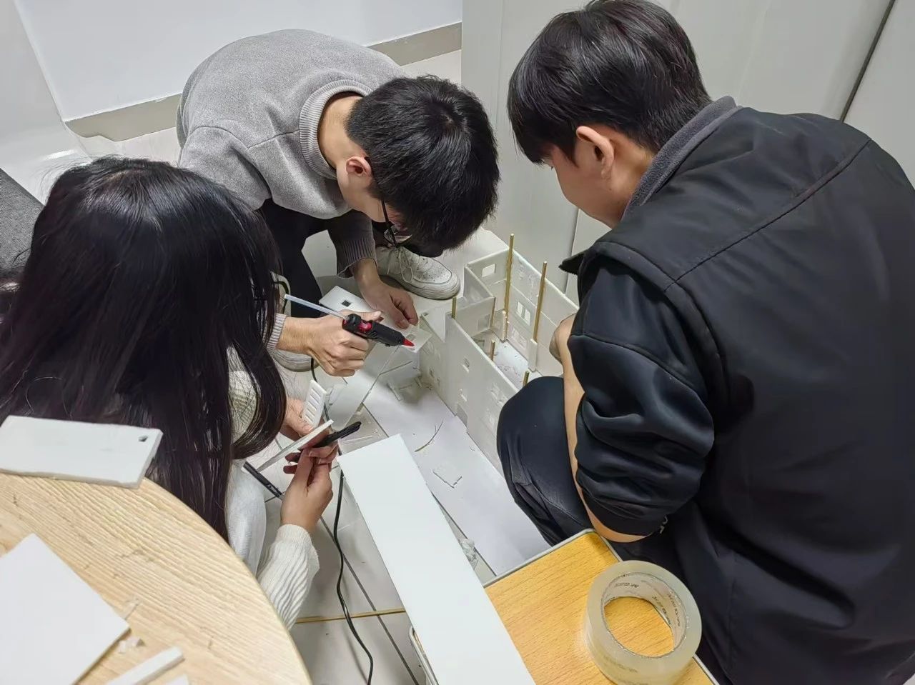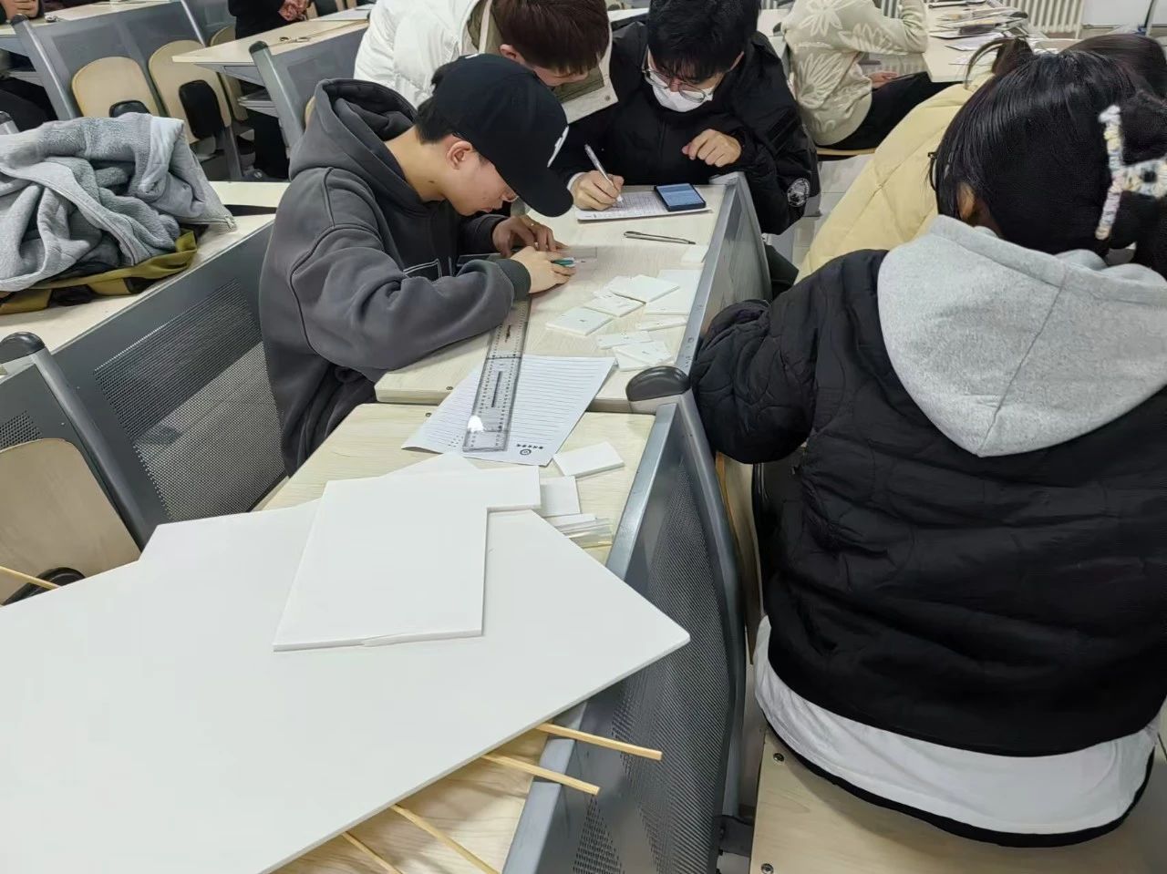在培训过程中,参赛选手们根据自己先前所设计的图纸,互相帮助,团结合作,使用材料共同制作成品模型。在老师的指导下,选手们自己找出制作失误时的原因并及时解决这些问题,这让他们在面对困难时更加从容、耐心。此外,现场指导老师还帮助参赛队伍更好地理解了赛题细节、竞赛流程以及模型制作技巧,实现了以赛促学,以赛会友的目标。