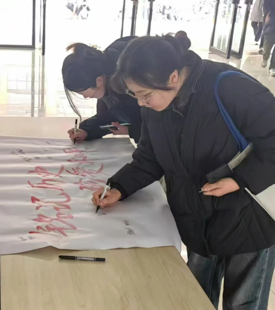 活动开始前,工作人员对现场进行了布置,摆放好签字笔并尽职尽责地做好活动引导。活动过程中,所有同学们都在准备的纸上签写下自己的姓名,一笔一划都倾诉着同学们对受难者的哀悼。在这个特殊的日子里,同学们共同回顾历史,感悟和平,对未来献上最真挚的期许。