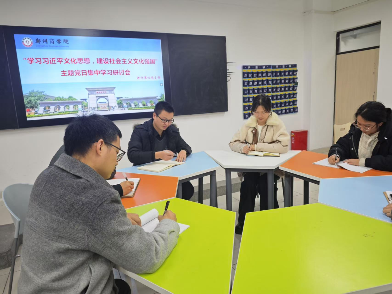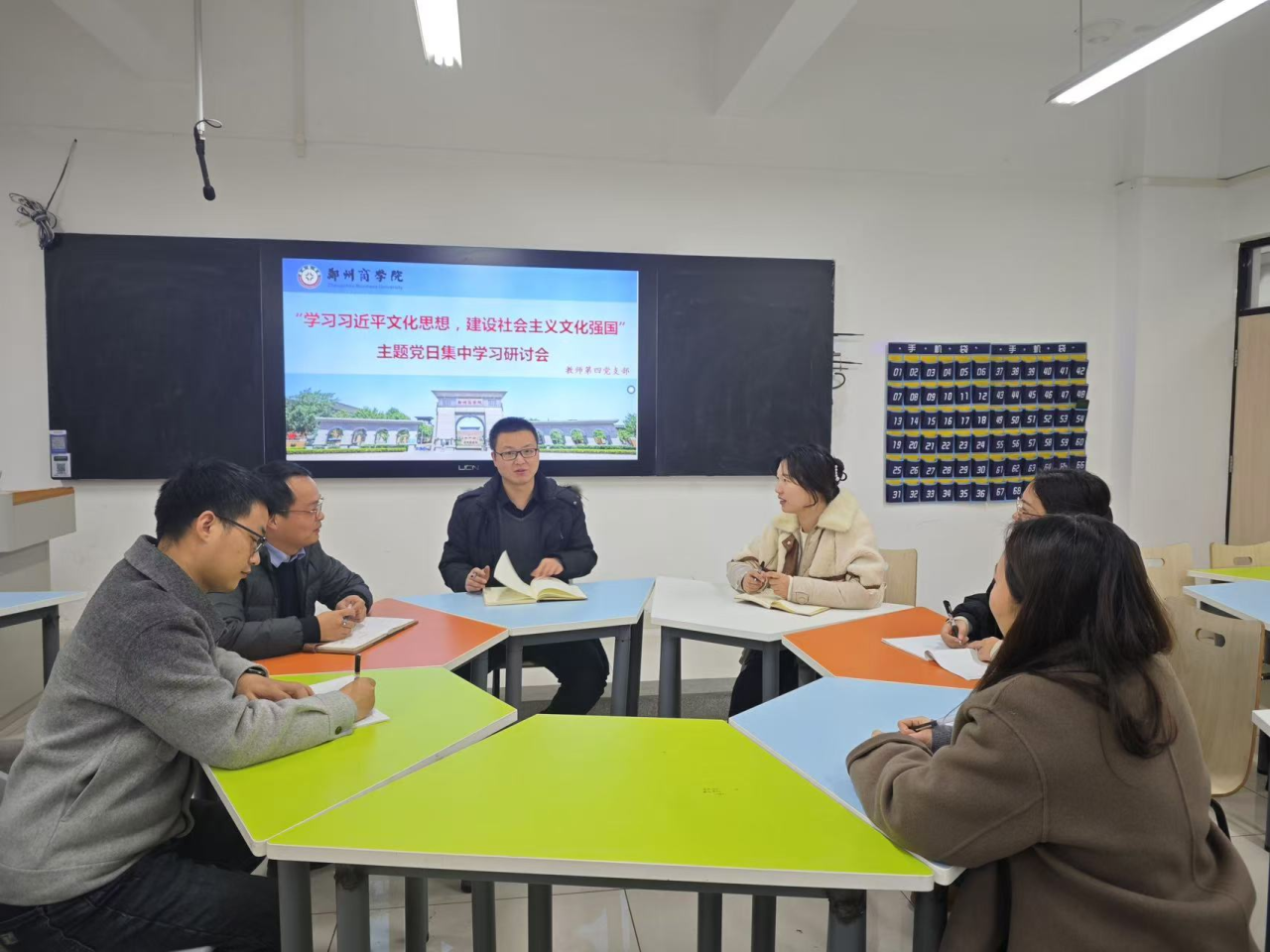 为认真贯彻学习习近平文化思想,进一步增强全体党员的文化自信和文化担当,为建设社会主义文化强国贡献力量,12月22日,我院教师第四党支部在亚泽楼智慧教室成功开展了以“学习习近平文化思想,建设社会主义文化强国”为主题的集中学习研讨会。