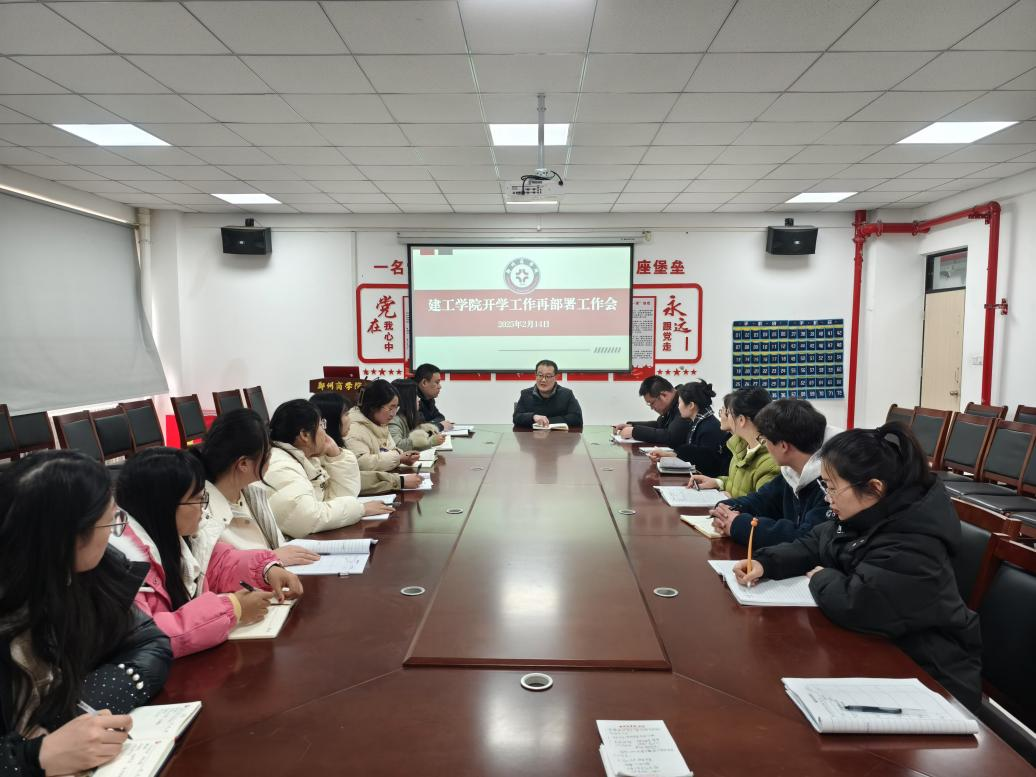 为全面做好新学期开学工作,确保各项工作有序进行,2025年2月14日上午,建工学院学院于亚泽楼113会议室召开2025年春季学期开学部署会。我院党委书记朱宏东、团委书记刘帅及全体辅导员参加会议。会上,朱书记强调,一是调整状态,以饱满的精神状态迎接新学期工作,做好学生安全返校工作。二是严格落实学务处关于新学期开学工作的通知要求,全力以赴完成新学期工作。三是聚焦审核评估、新校区搬迁、安全稳定、宿舍管理、队伍建设和就业创业等重点工作,认真谋划,开拓创新,争创学生工作再上新台阶。