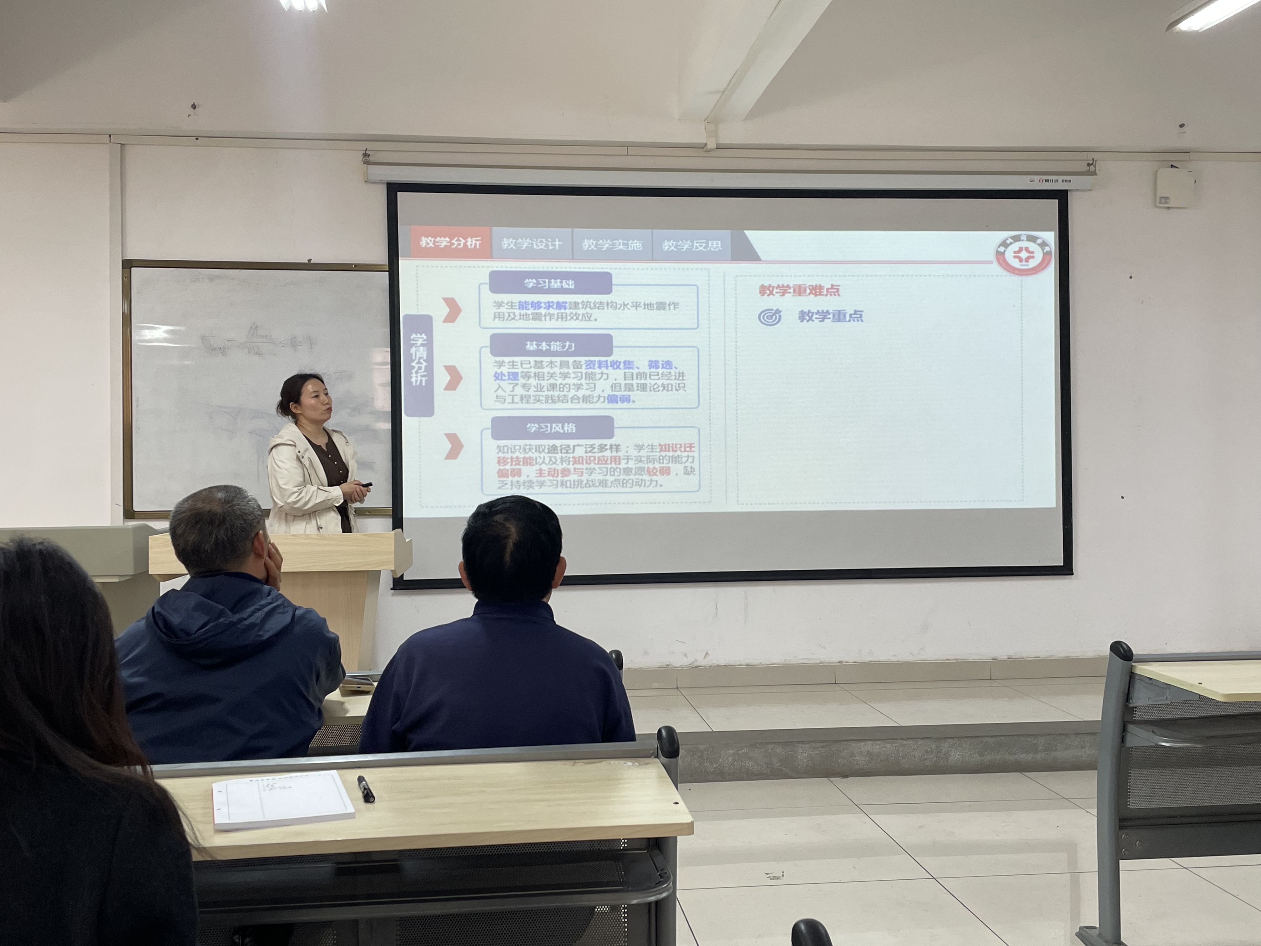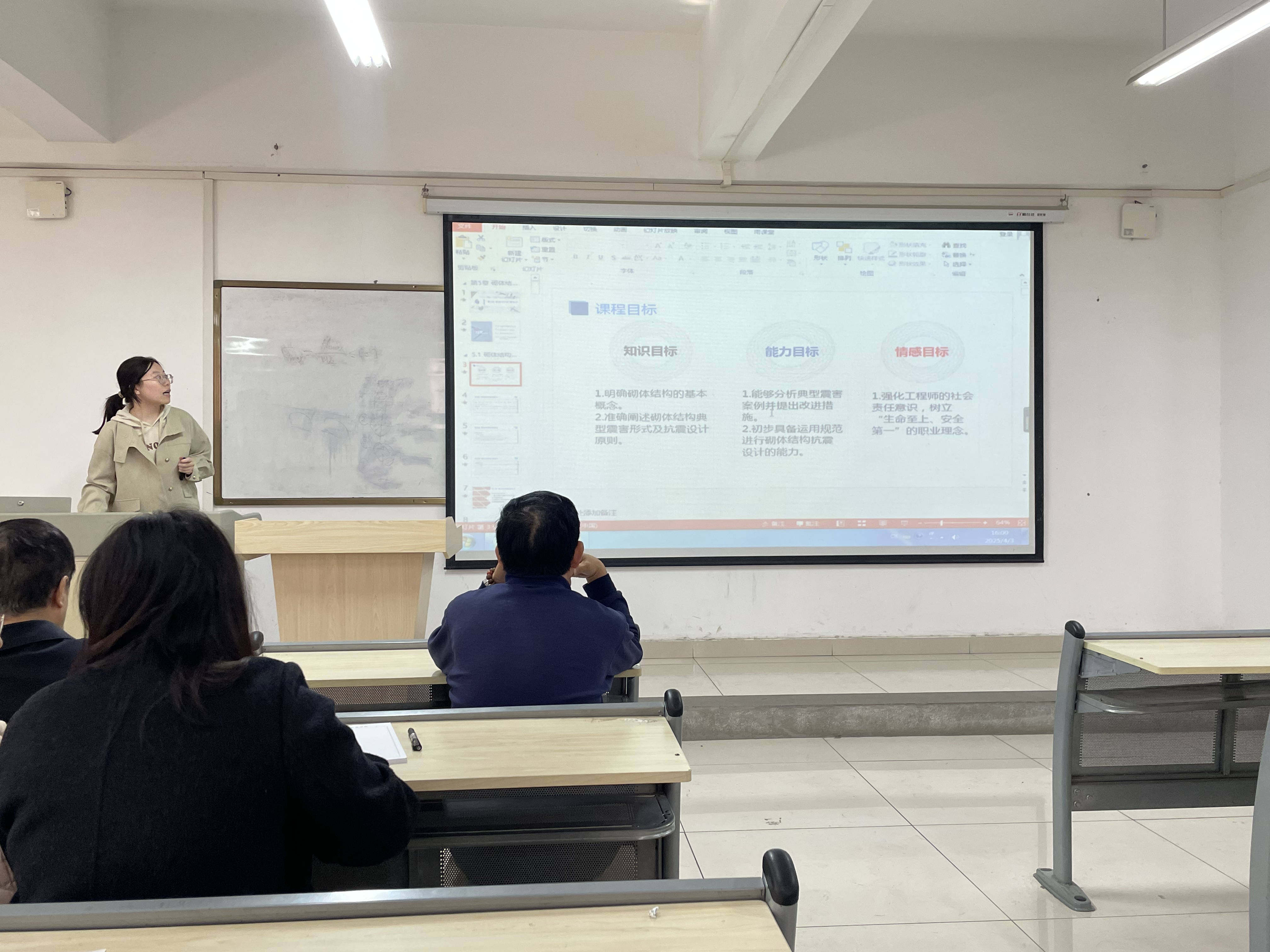 会上,四位优秀教师从课程内容的结构设计、教学方法的创新运用、教学成效的目标达成等方面依次对课程设计进行了展示。