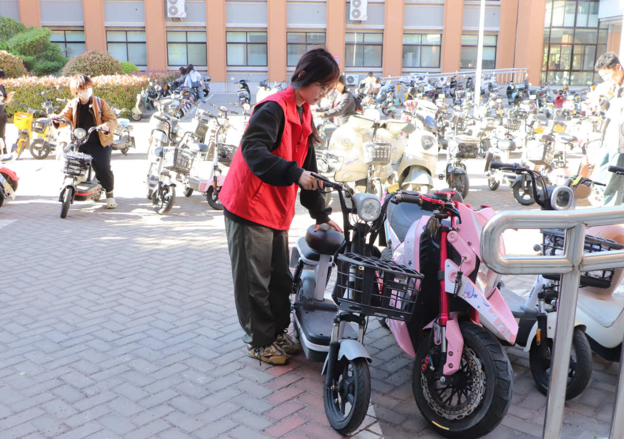 随着同学们出行需求的增加,电动车已成为校园内常见的交通工具。然而,此前电动车乱停乱放的现象时有发生,不仅影响了校园的美观,还存在一定的安全隐患,为此,智能建造学院加大管理力度,致力于营造安全有序的校园环境。