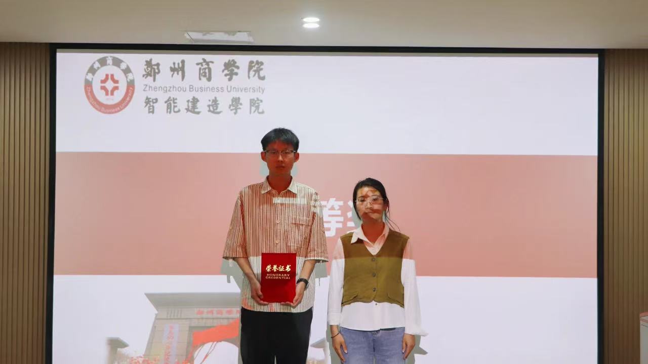 比赛结束后,张愉愉老师为一等奖获奖者王文科颁奖。