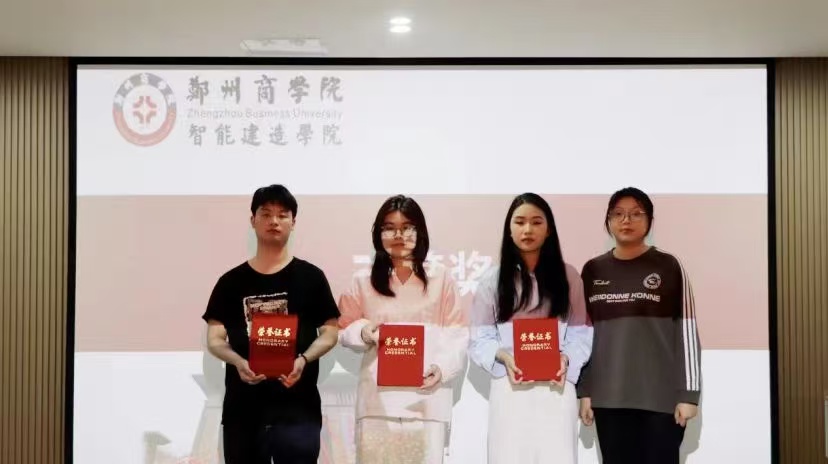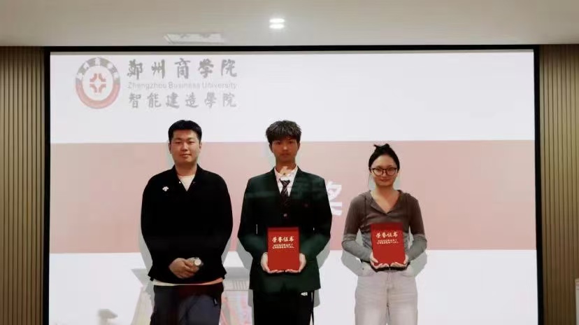 第九届团委学生会主席黄静雅为优秀奖获得者曹玉翔、袁文翔、赵宇静颁奖。