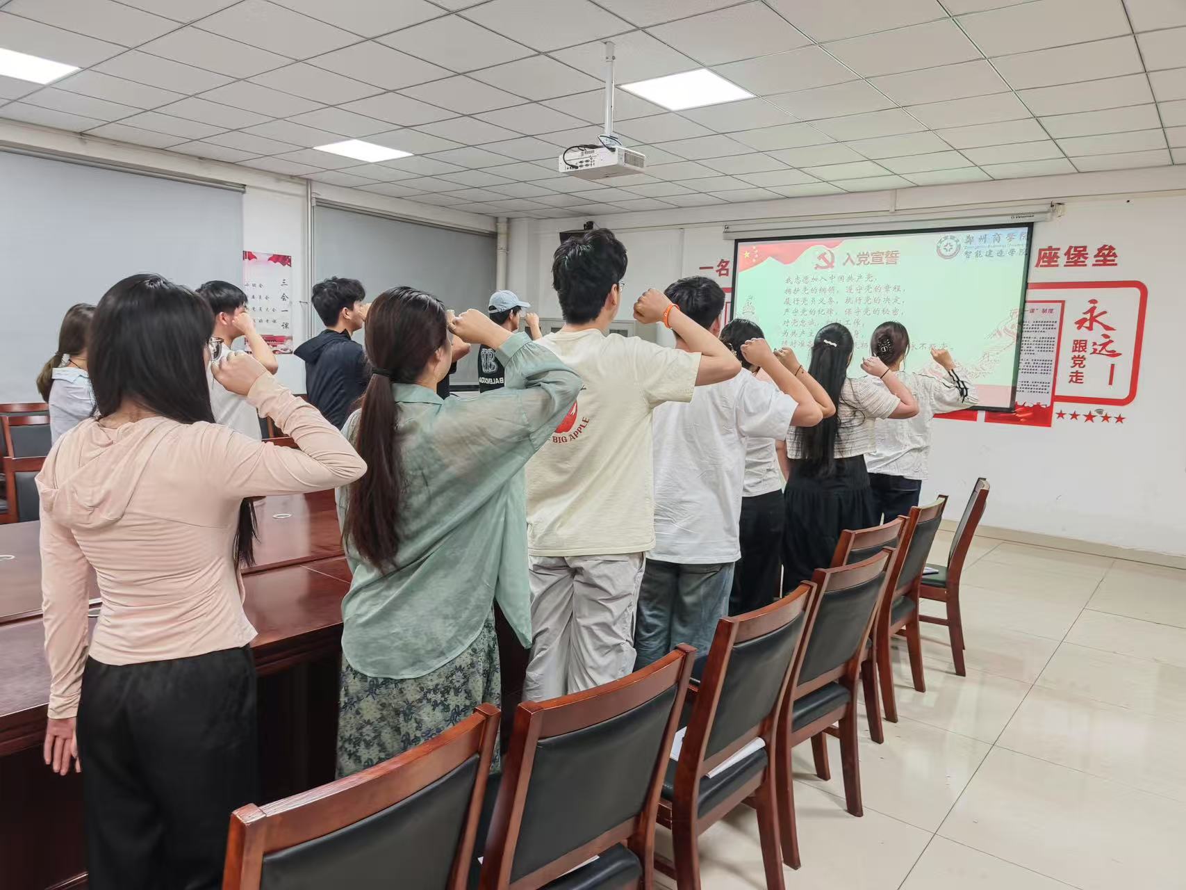 “我志愿加入中国共产党......”支部全体党员在支部书记的带领下,高举右拳,重温入党誓词。重温入党誓词,是一次涤荡灵魂的精神洗礼。会上,支部书记带领支部党员学习了中央八项规定实施细则精神。通过学习,使学生党员深刻认识到此次学习教育的重要性和必要性,引导学生党员认真研读政策规定和重要论述。随后,支部党员共同观看员观看警示教育专题片《永远吹冲锋号》,以真实案例警醒全体党员要把纪律规矩挺在前面,教育党员以更高标准、更严要求锤炼党性、提高觉悟,防微杜渐。最后,全体党员对照中央八项规定精神开展自检自查,并分组讨论“学生如何在日常生活中贯彻中央八项规定精神”。支部党员纷纷表示,作为学生党员,要时刻牢记对党忠诚,将中央八项规定精神内化于心、外化于行,在今后的学习和工作中,要以更加严格的标准要求自己。