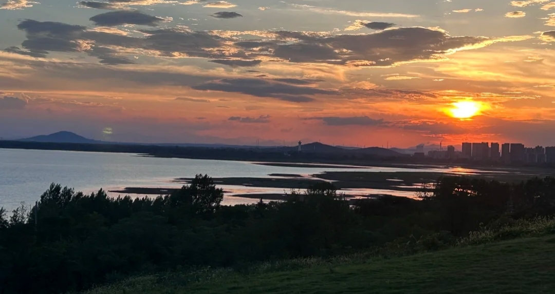在我的印象里,白龟湖的湖水总是那般澄澈,微风拂过,泛起层层涟漪,像是大地轻柔的呼吸。夕阳西下时,那抹橙红色的余晖,将天空与湖面晕染得如梦似幻,云朵被镀上金边,宛如灵动的画卷在眼前缓缓展开。