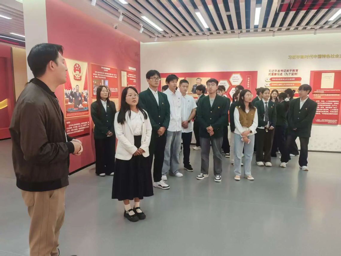 活动伊始,全体党员前往"真理之光"思政主题教育体验中心进行参观学习。在场馆讲解员的引导下,讲解员详细地讲解了场馆的建设初衷、整体架构以及丰富的数字化互动体验环节。通过将抽象的理论知识与可触可感的现实情境相结合,大家在沉浸式体验中深入思考,真切感悟马克思主义中国化创新理论所闪耀的真理光芒和蕴含的磅礴实践力量。