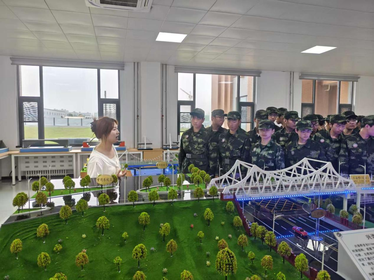 在桥梁模型展示室,张老师通过精细的缩尺模型与详细的结构解析帮助同学们深入理解了不同桥梁的构造与类型。随后的桥梁施工实训室内,大家观摩了挂篮施工、动力荷载试验、预应力张拉等关键工艺的模拟演示,对桥梁施工技术有了更为具体的认识。