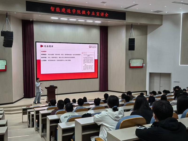 9月18日下午,智能建造学院在报告厅举办了“工程结构体检技术”微专业宣讲会。学院院长张燕燕教授、各教研室主任、部分青年教师及200余名23级在校生出席活动。