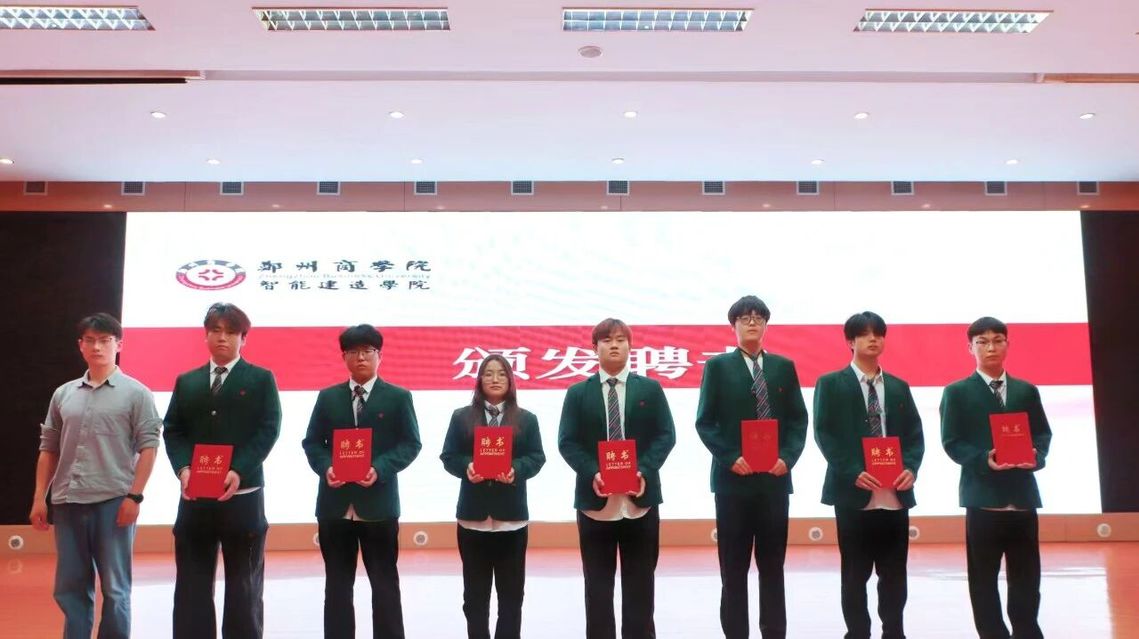 仪式由学院专项负责人张雅雯老师主持。仪式伊始,学院团委书记刘帅宣读《智能建造学院2025—2026学年劳动教育表彰决定及聘任决定》,学务处劳卫科魏瑶科长和林琳老师分别为获奖集体与获奖个人颁发荣誉证书,鼓励他们发挥榜样作用,持续传递劳动正能量。随后,25级新生辅导员汤帅毅老师、李莹莹老师共为新任劳动骨干颁发聘书。