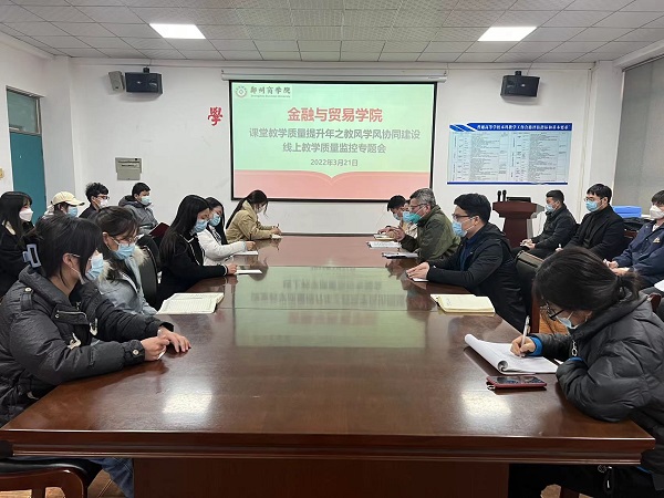疫情形势下,为提升线上课堂教学质量,加强教风和学风协同建设,保证人才培养的质量,3月21日,我院于1号教学楼110会议室举行了课堂教学质量提升年之教学学风协同建设线上教学质量监控专题会,会议由教学秘书胡乃峰主持,院长杨山峰、学院教学质量监控督导员陈书燕、部分辅导员,以及线上教学行政班的所有学委共同参加。