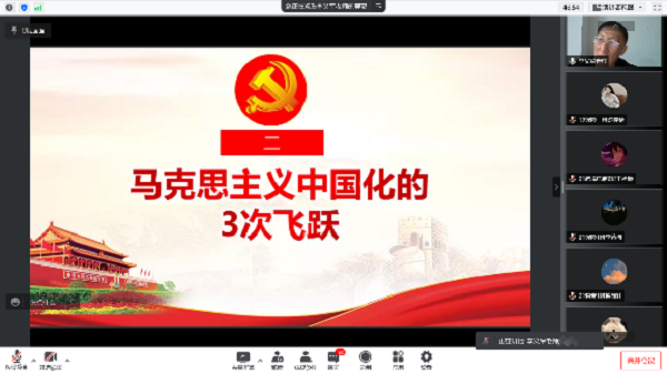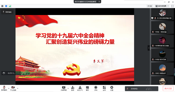 开班仪式后,全体党课学员通过在线会议进行党课第一讲。李义军老师先介绍了本次会议的主题是“学习党的十九届六中全会精神,汇聚创造复兴伟业的磅礴力量”;随后,他对改革开放以来党的历届三中全会进行总结介绍,并围绕党的十九届六中全会议的会议时间、会议概况、会议内容、《决议》的重要意义、马克思主义中国化的3次飞跃、百年历程创造的4个伟大成就、党的百年奋斗的5大历史意义等具体内容展开讲解。会议中同学们都表现的非常积极,在对话框上踊跃的与老师互动。