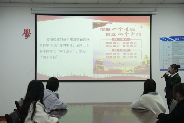 本次宣讲活动由薪火宣讲团成员20物流1班团支书孙诗雨同学主讲,她以党的光辉历程与伟大成就为宣讲着力点,结合微视频,聚焦党的实践,深挖党史资源,讲活党史故事,带领同学们学习党筚路蓝缕奠基立业的光辉历程,感悟党砥砺前行为民服务的如磐信仰。引导青年团员学习好、总结好党的百年历史,发扬好、传承好党的红色基因,继承好、弘扬好党的思想火炬,在学习领悟中坚定理想信念,在奋发有为中践行初心使命。