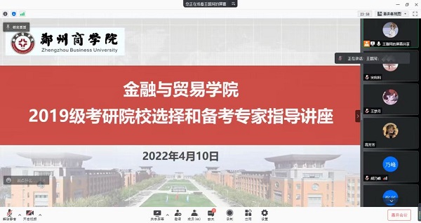 为进一步加强我院学生对考研备考的认识,指导学生选择考研的院校和专业,4月10日上午,我院特邀河南科技大学考研指导专家熊豪教授举办《考研+就业,该何去何从?》线上专题考研指导讲座。讲座由物流管理教研室专职教师王璐珂主持,2019级考研备考学生及2020级有意向考研的学生参加。
