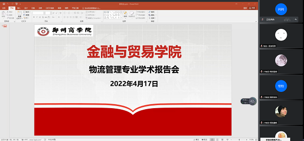 为进一步拓展我院师生的专业视野,了解物流行业发展前沿,4月14日晚上,我院特邀请河南省普通高校物流管理与工程类专业教学指导委员会原主任委员刘源教授举办线上专题学术报告,会议由教师宋利利主持,全体无课物流管理教研室教师和物流管理本、专科学生参加。