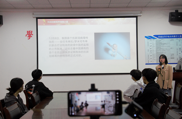 本次宣讲活动由薪火宣讲团成员20国贸1班苗雪婧同学主讲,首先她以科技兴则国家兴为论述点,阐述建设世界科技强国的重要意义,其次她又以我国科技发展现状为深入点,带领青年学生深入了解科技是立国之本以及科技是祖国发展动力的基本内涵,最后宣讲节点聚焦于青年,表述青年力量在当今科技时代的重要作用,以此引导青年学生要立鸿鹄志,展大鹏翅,梦中国梦,强中国强,以强国为梦,以科技创新为智,不负韶华。