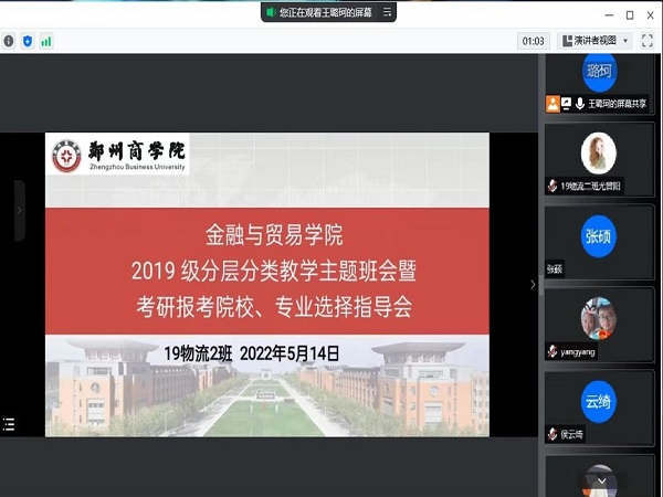 为持续推进分层分类教学开展,确保分层分类教学成效,更好的满足学生个性化发展的需求。5月18日前,我院对2019级本科各专业行政班级举行了分层分类教学主题班会活动,各班兼职班主任以及我院2019级本科专业全体学生参加了此次活动。